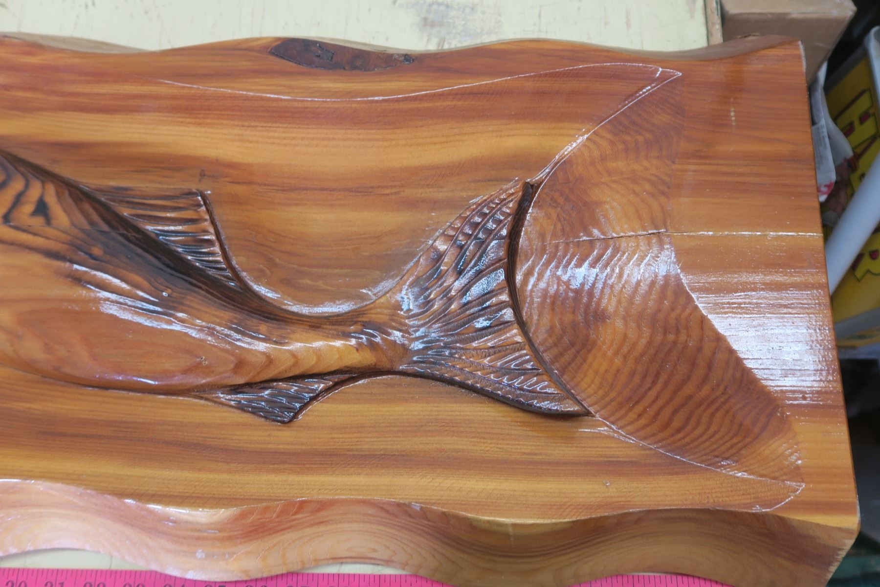 Wood Carved Fish Picture 30"X15" - Live Edge 3slab