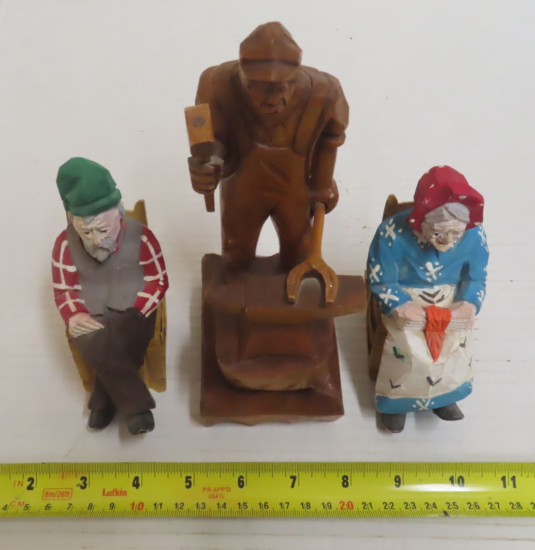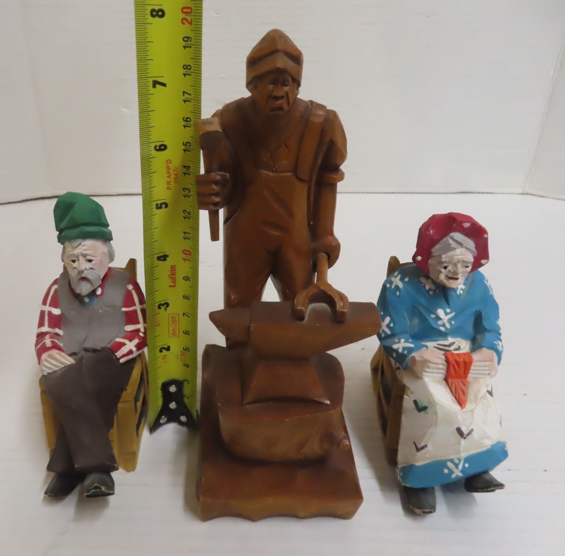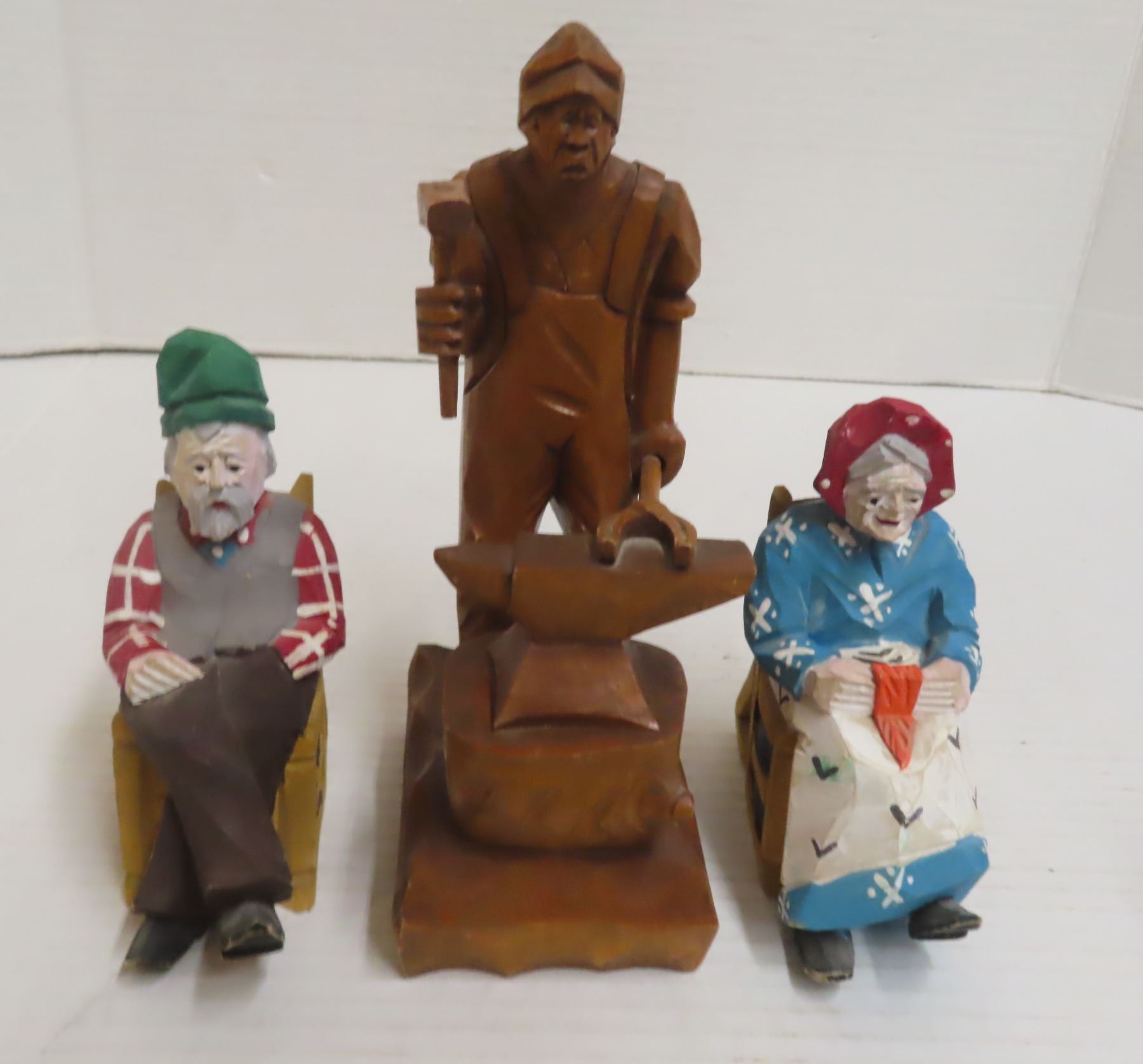 Wood Carving Quebec Canadian Folk Art and Antique Hand Carved Wooden Old Man and Women Figure.