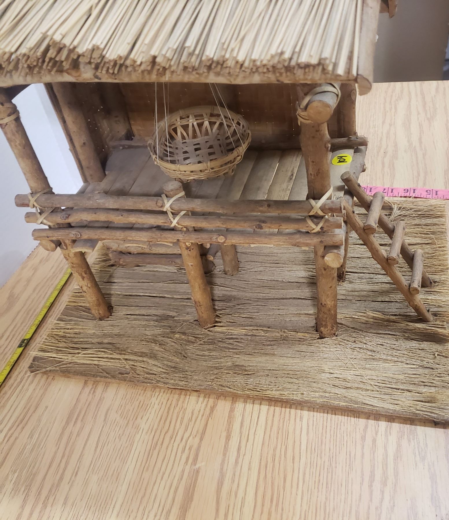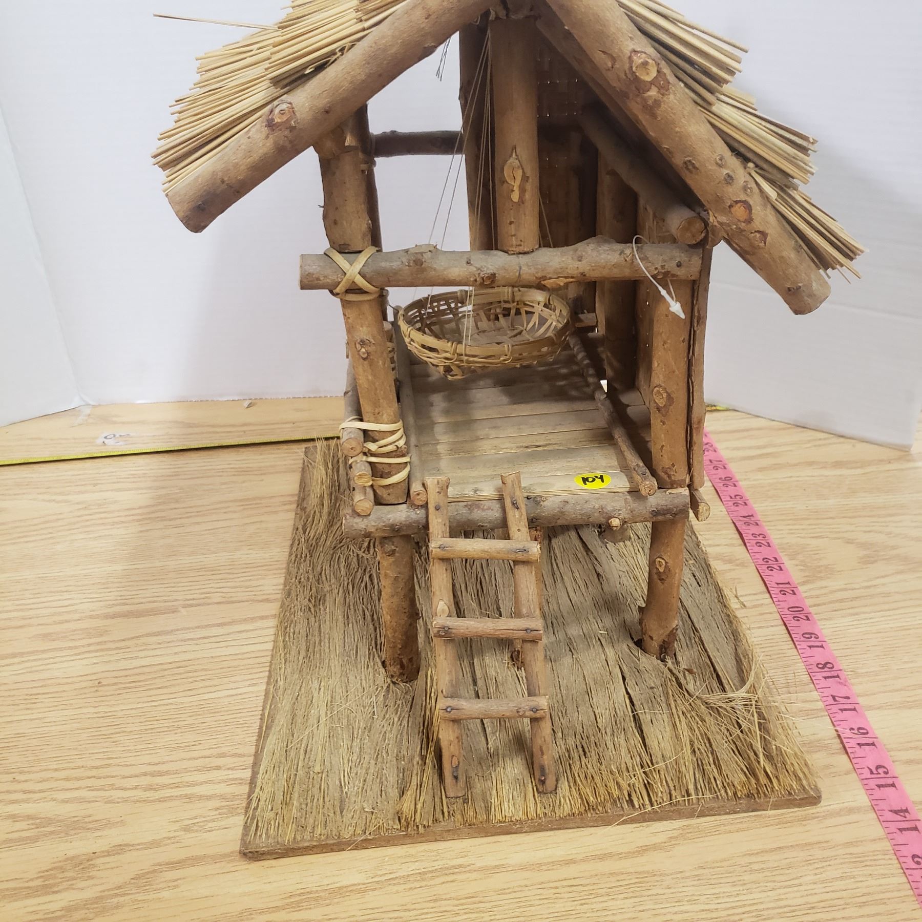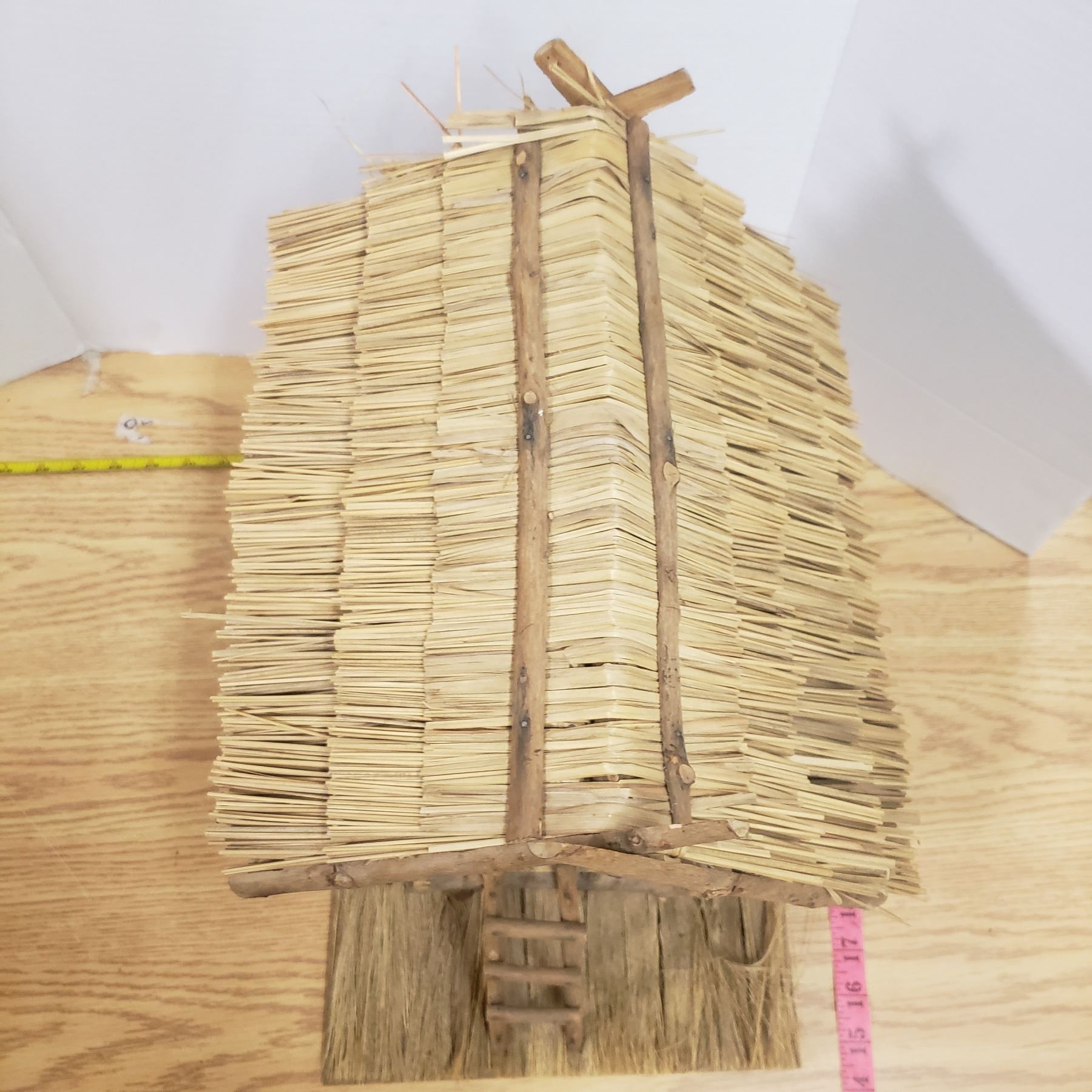 Wood Decorative thatch house 12"x12"
