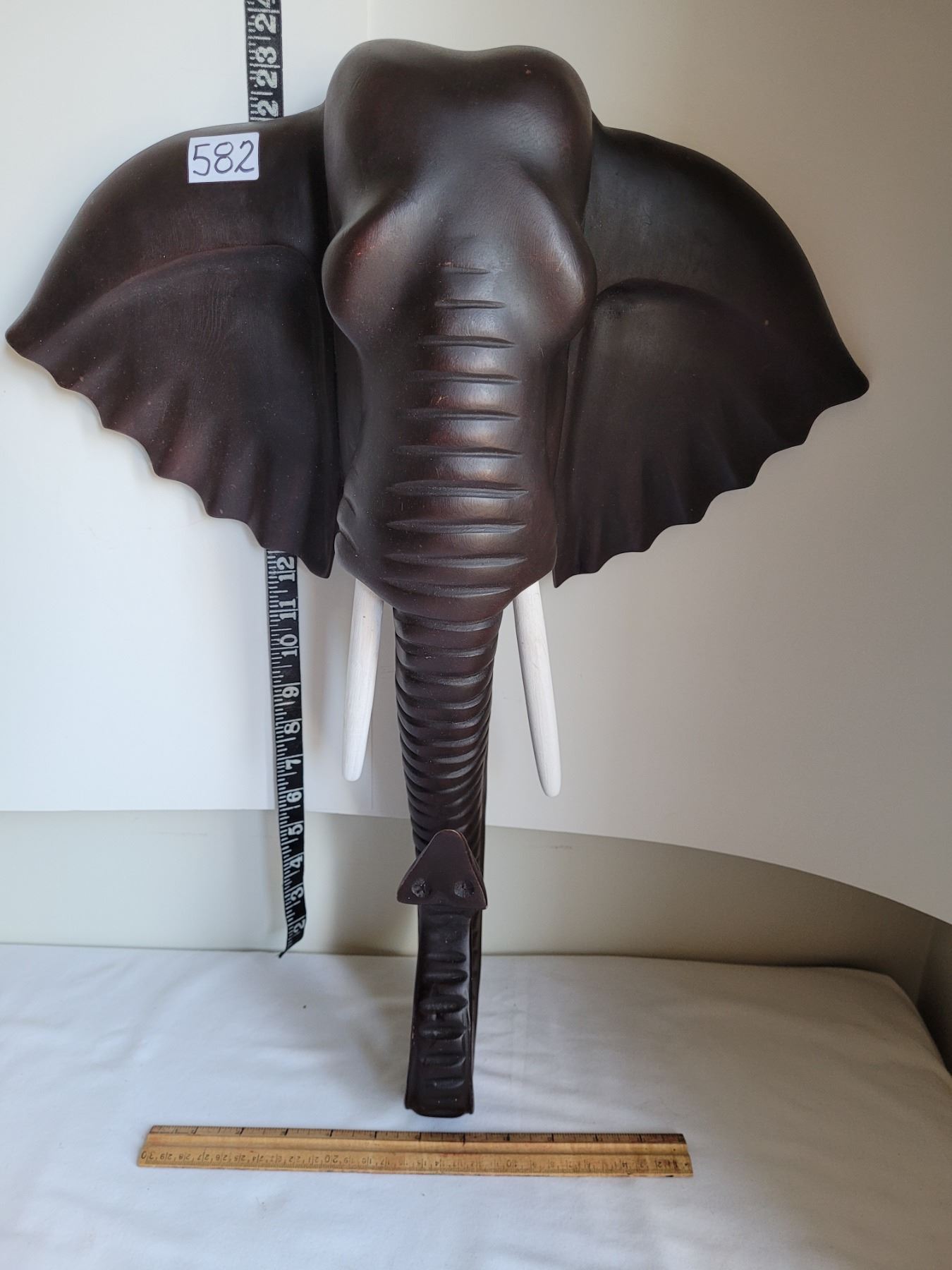 Wood Elephant head 3D wall decor. 23” tall