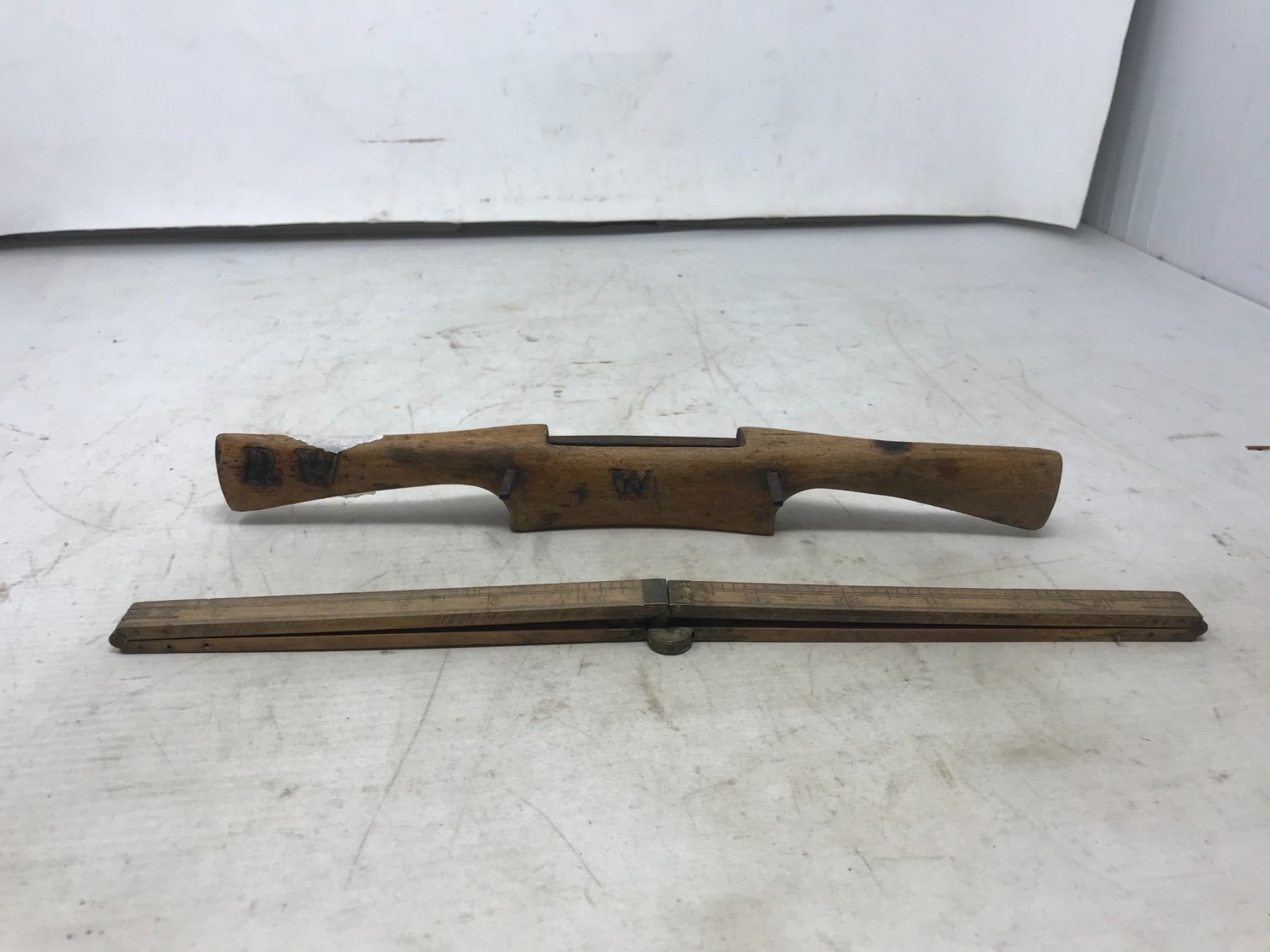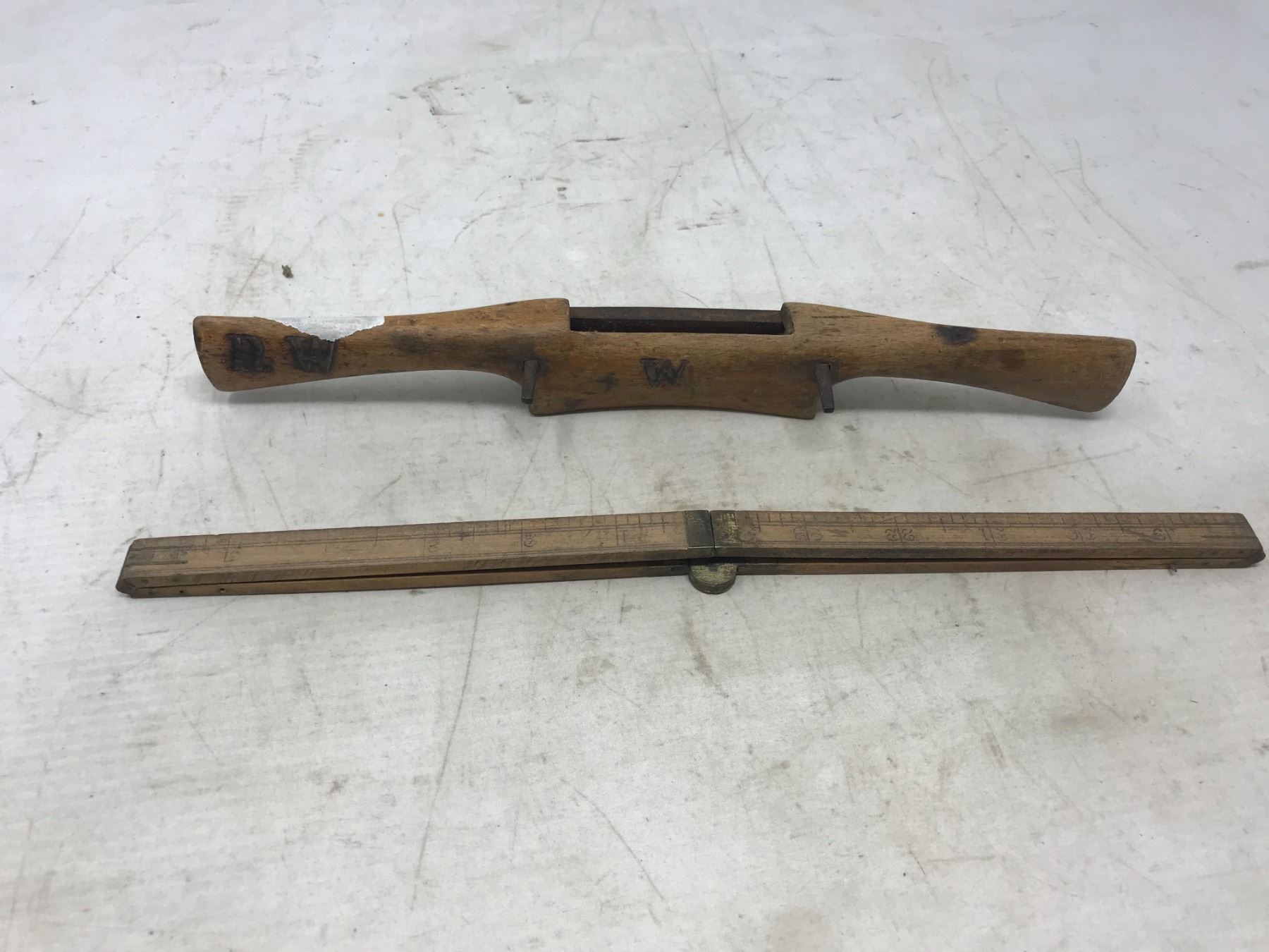 Wood Fold Up Ruler 24" And Early Wood Plane