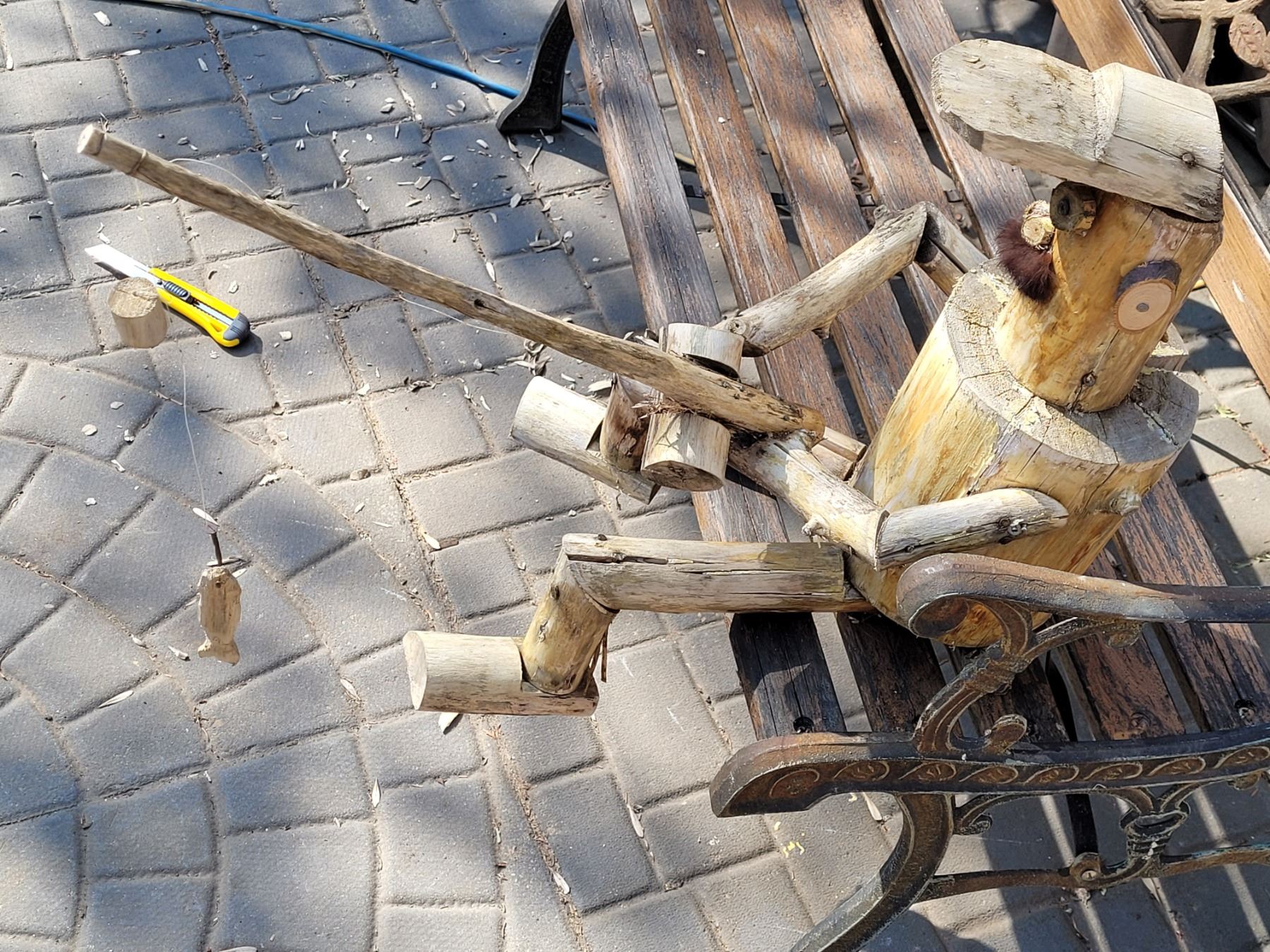 Wood Handmade sitting fisherman.