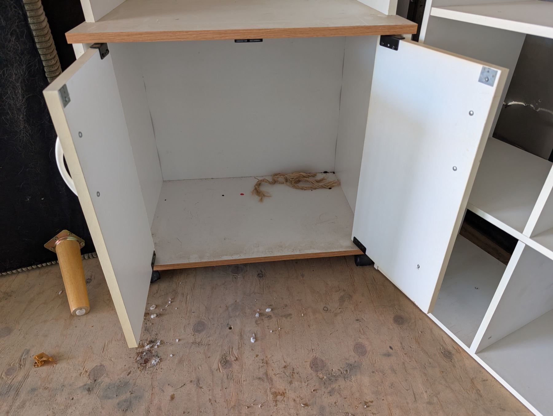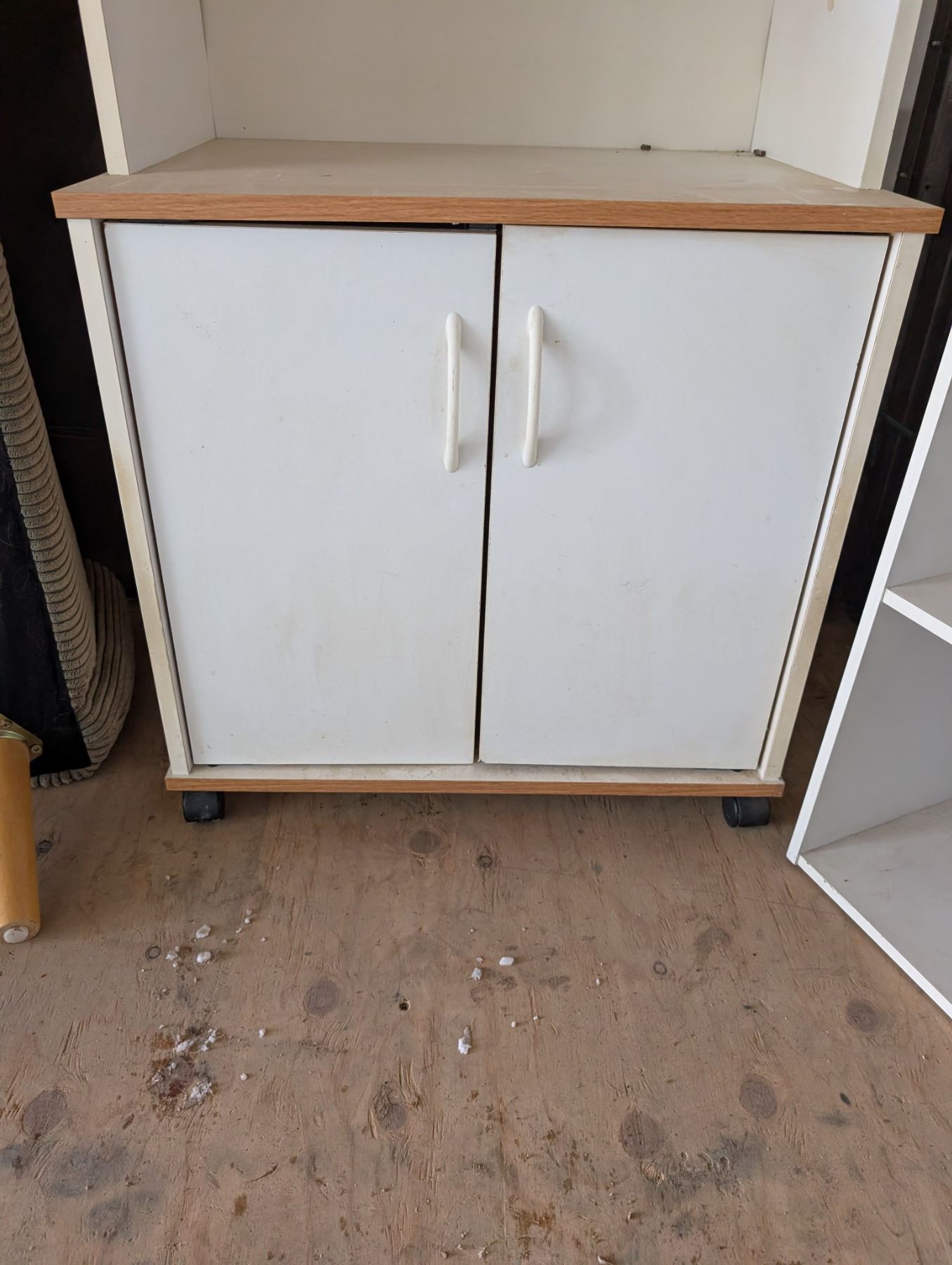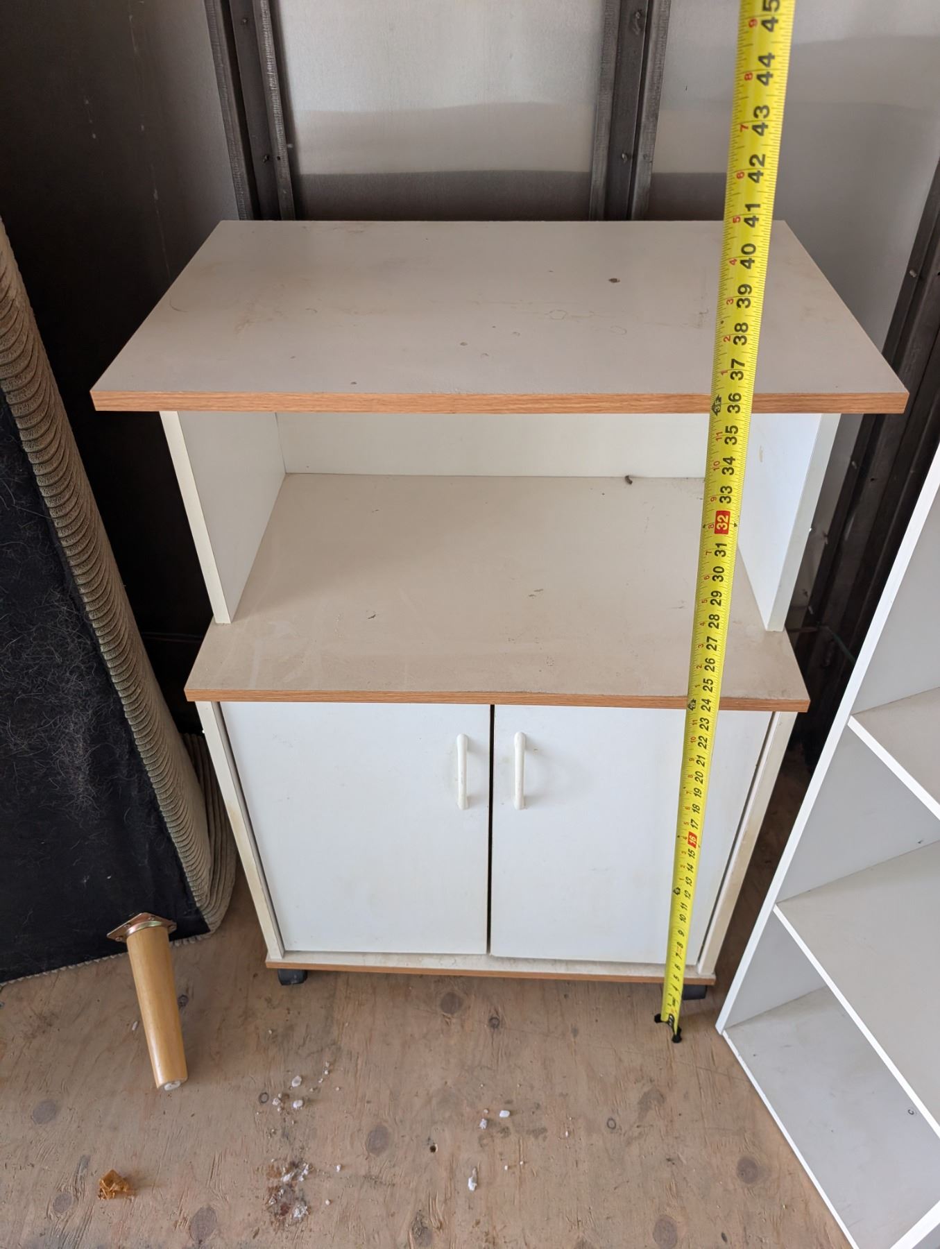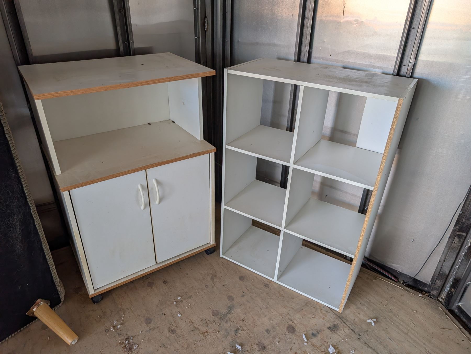 Wood Shelf Box and Wood Rolling Cart w/ Cabinets