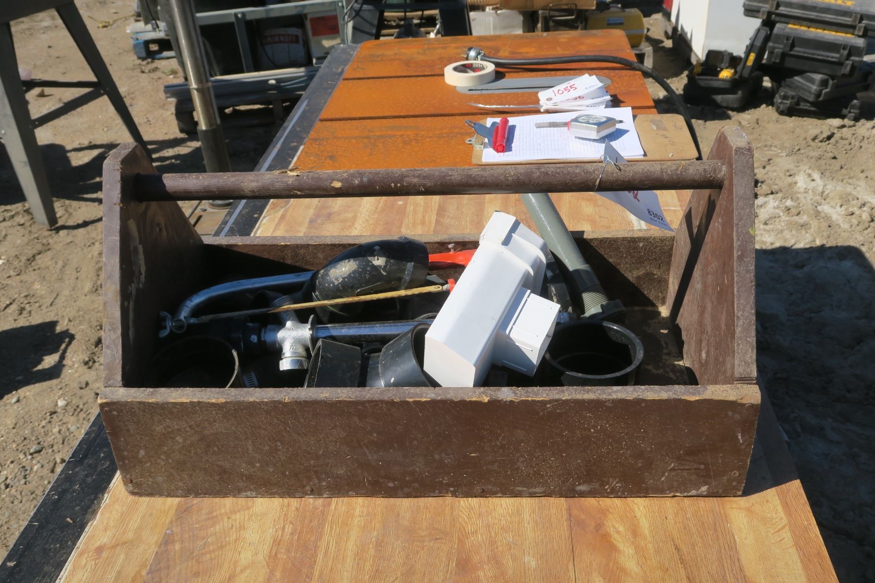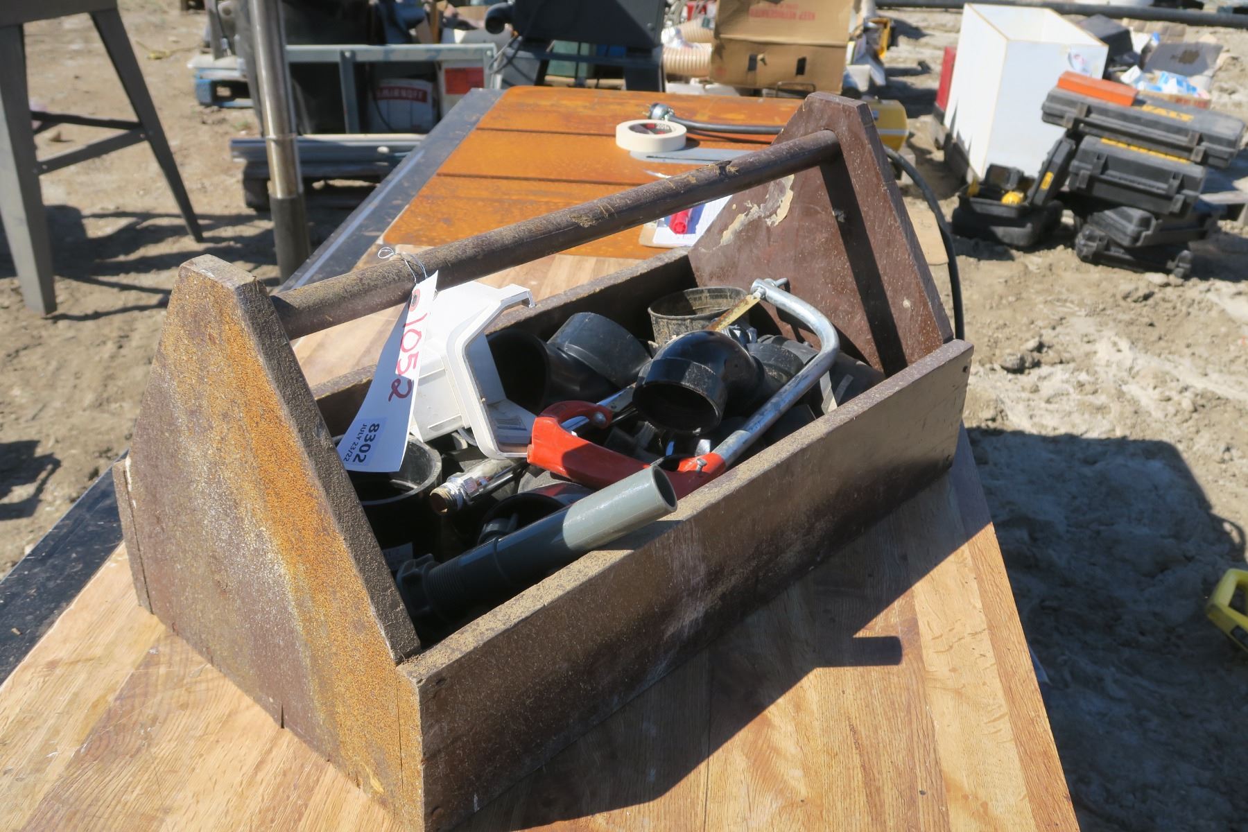 Wood Tool Tray w/ Plumbing Contents - 13x24x12H"