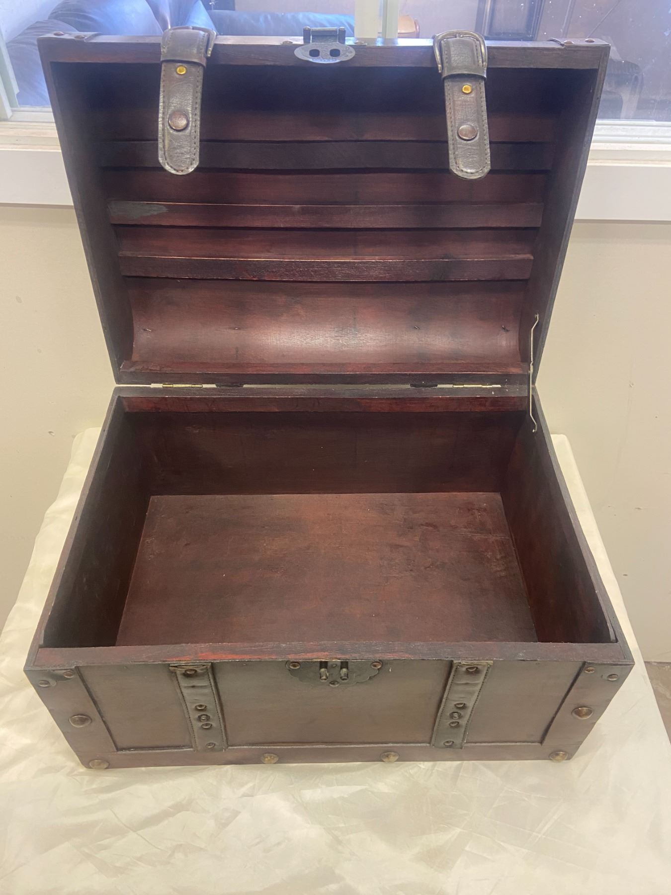 Wood Trunk w/ Faux Leather Finish (19.5" x 14" x 12"H)