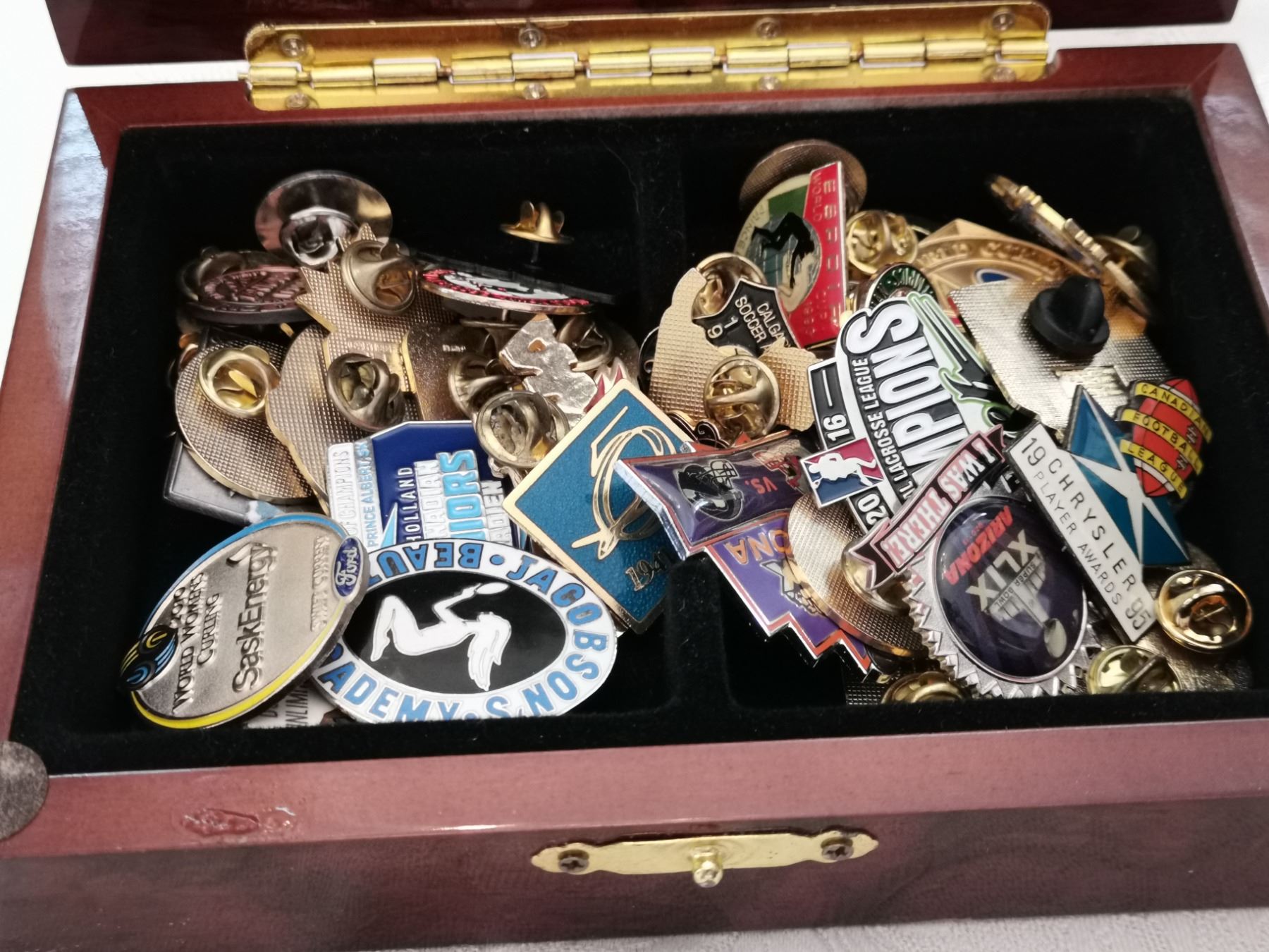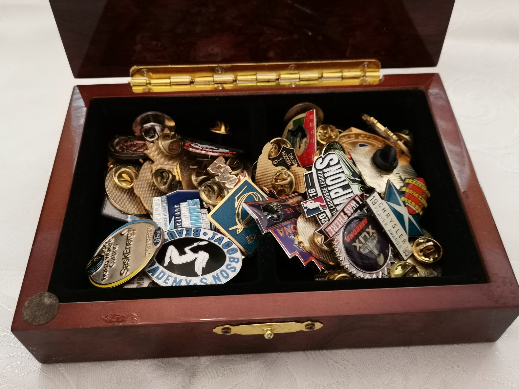 Wood box with lapel pins