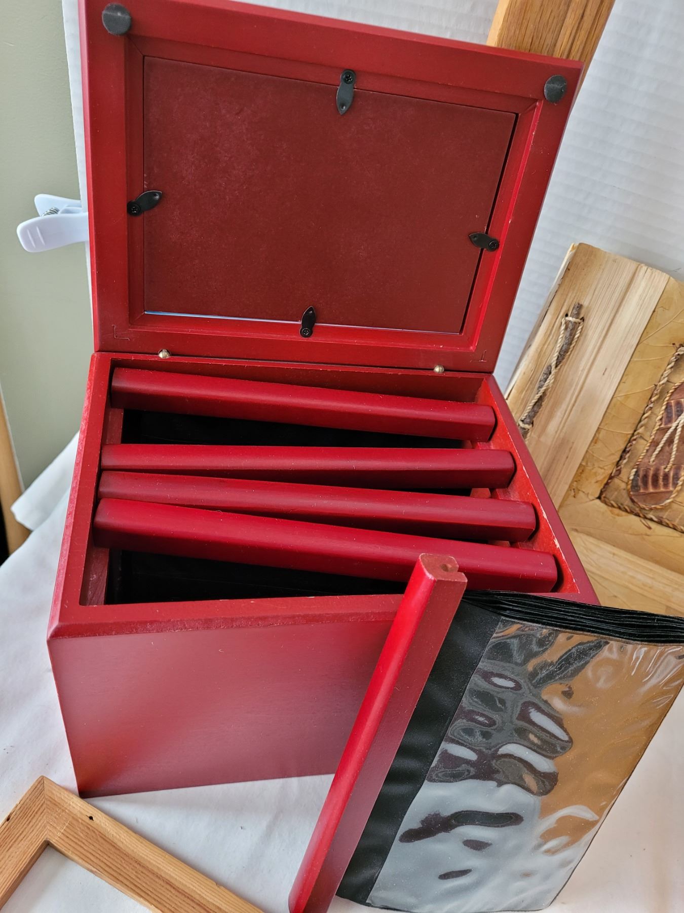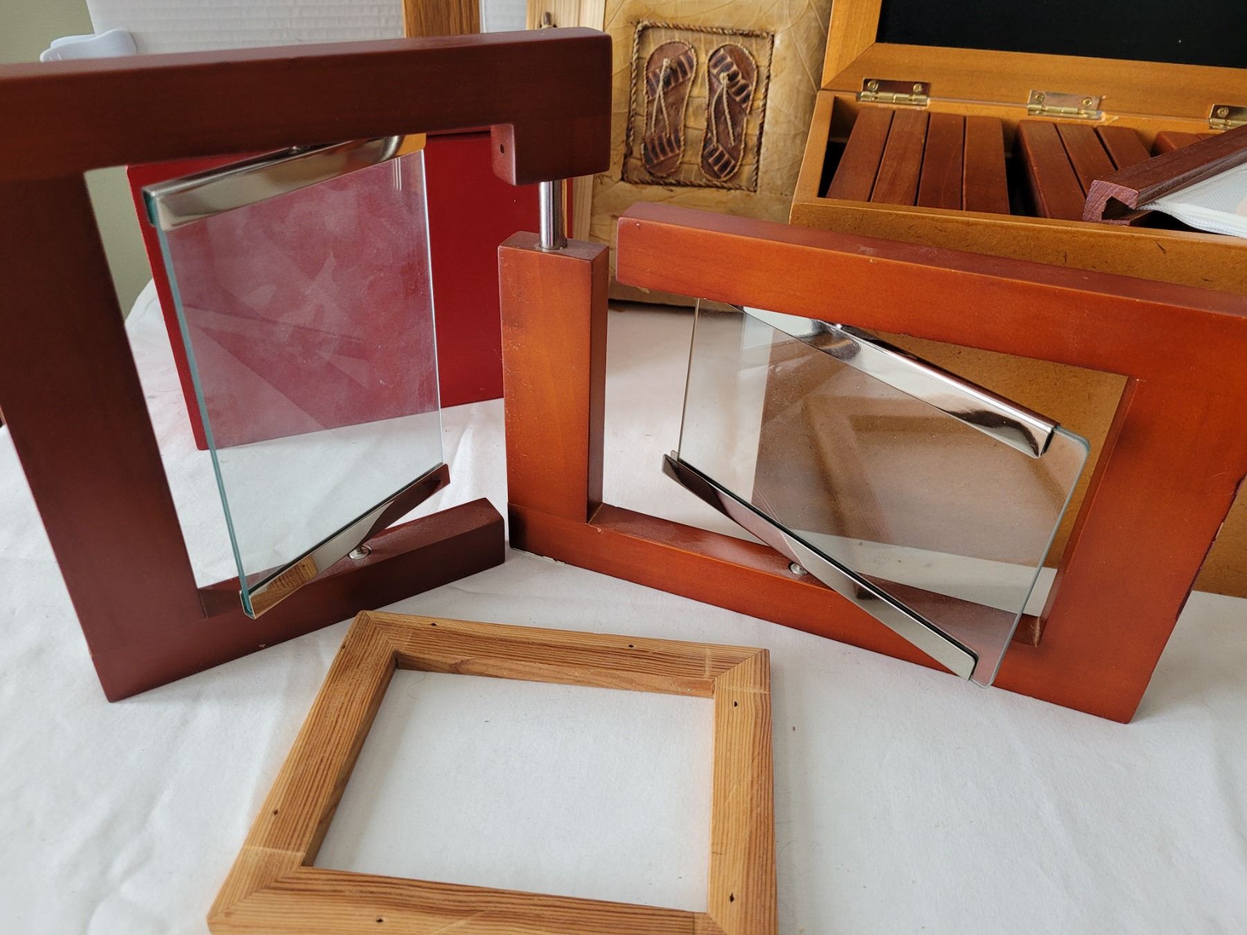 Wood photo storage boxes & frames.