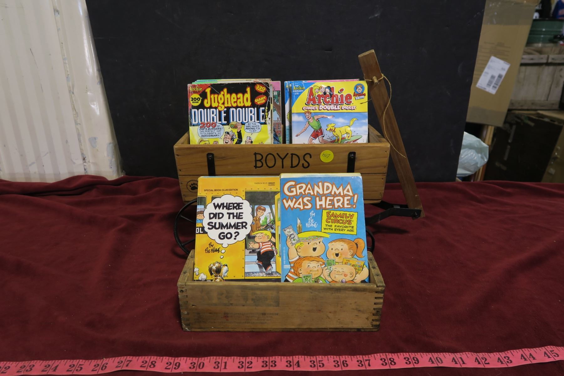 Wood wagon + Box with Archie & Family Circus lot