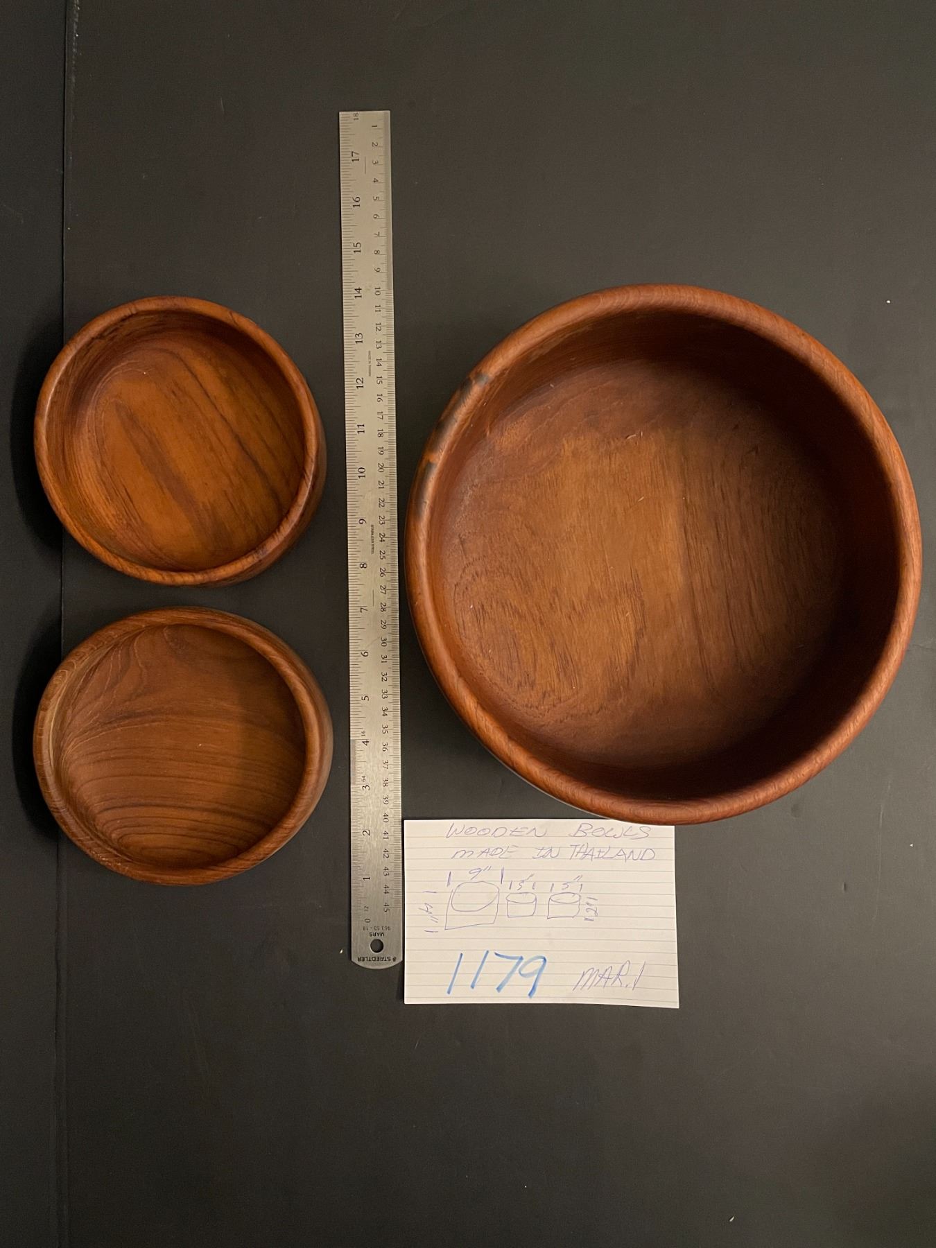Wooden Bowl Set - lot of 3 - made in Thailand