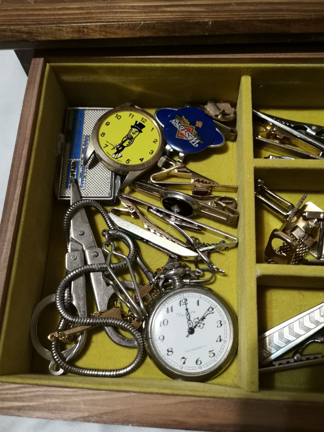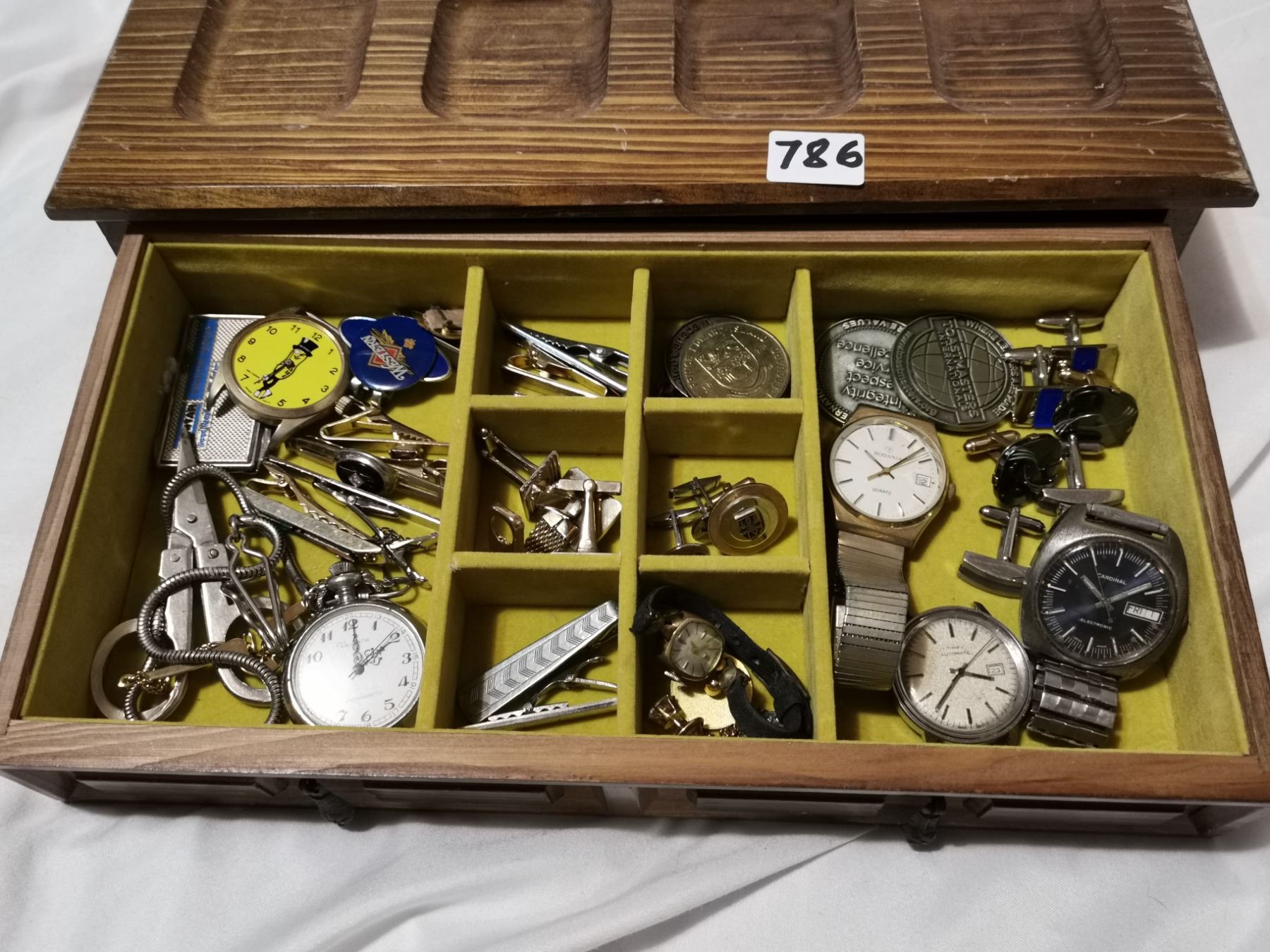 Wooden Box w/ Content, Watches, Cufflinks