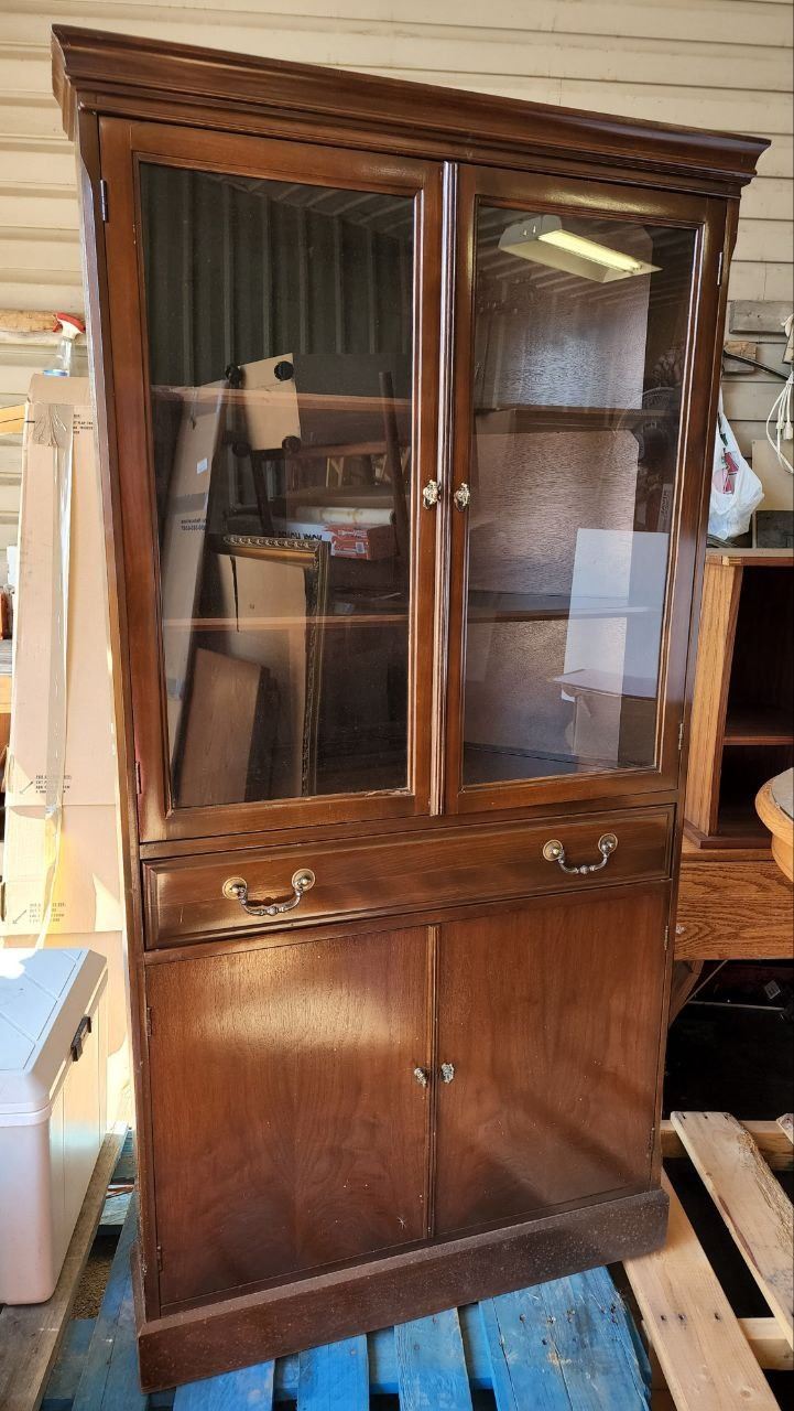 Wooden China Cabinet, Top Glass doors H- 5ft 5" W-2ft 2" D-1ft 8"