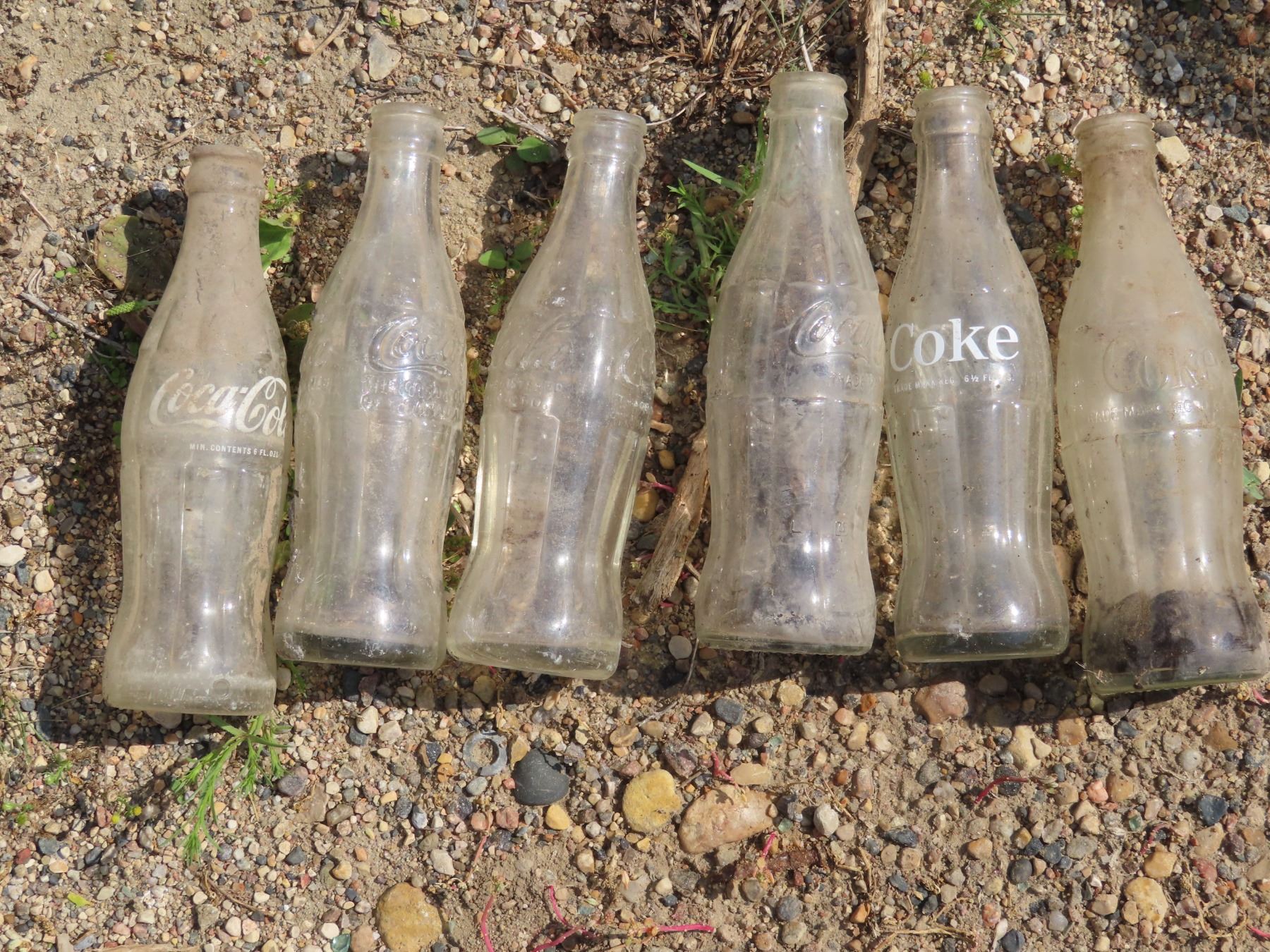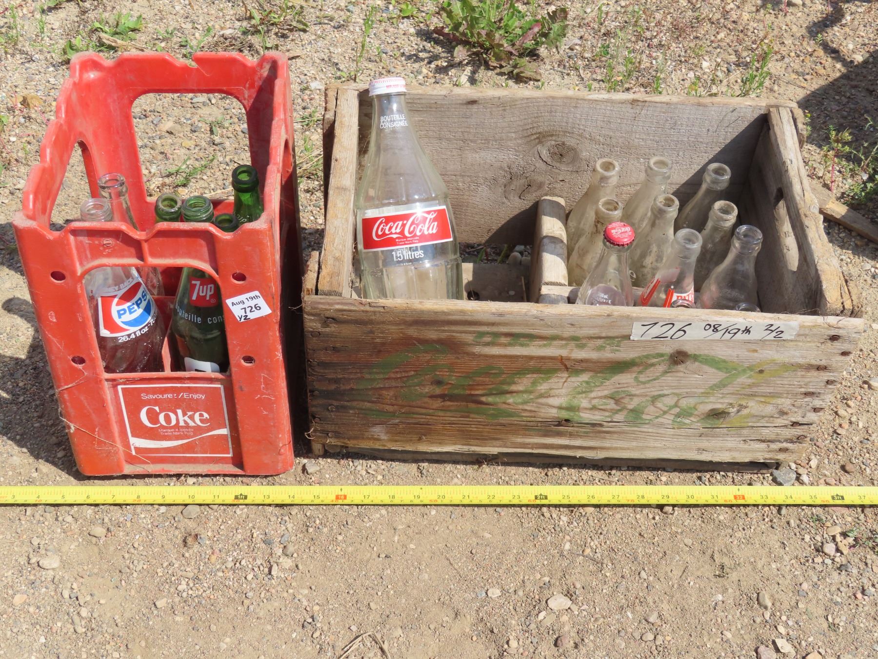 Wooden Coca-Cola box with glass Coca-Cola bottles + plastic Coke bin with glass bottles
