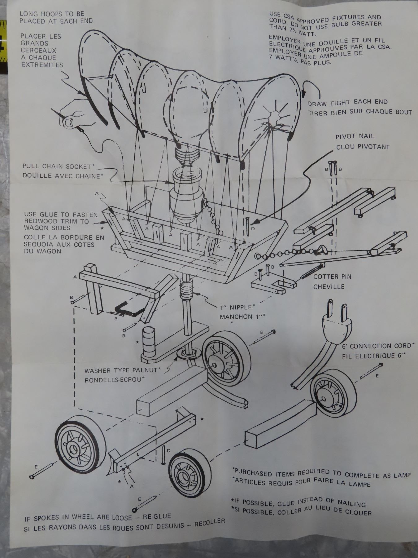 Wooden Covered Wagon - "Makes an Ideal Lamp" - Electrical parts not included