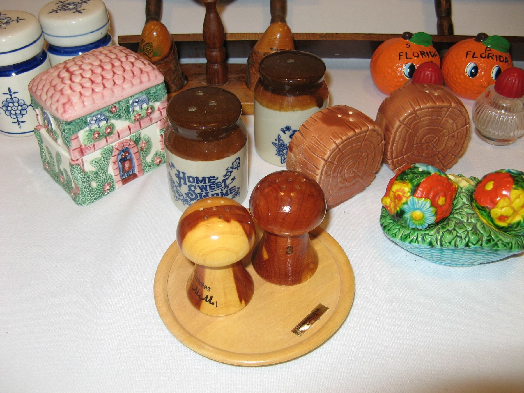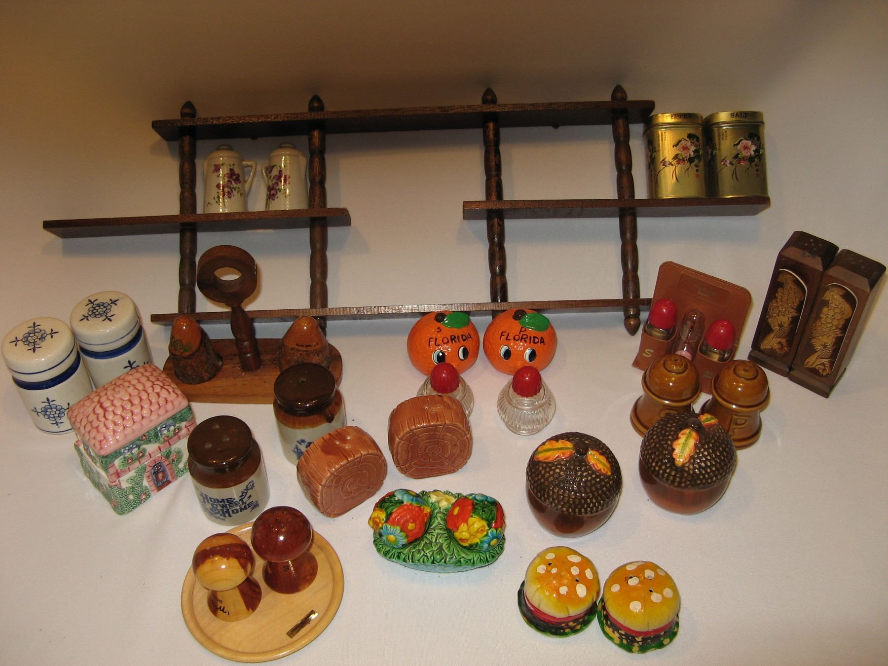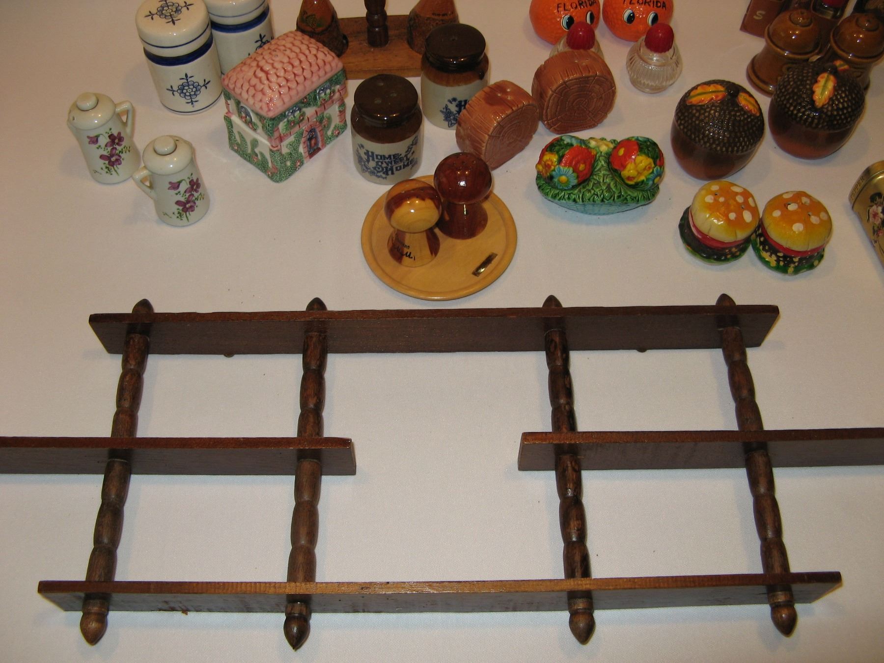 Wooden Knick Knack Shelf & Salt & Pepper Shakers