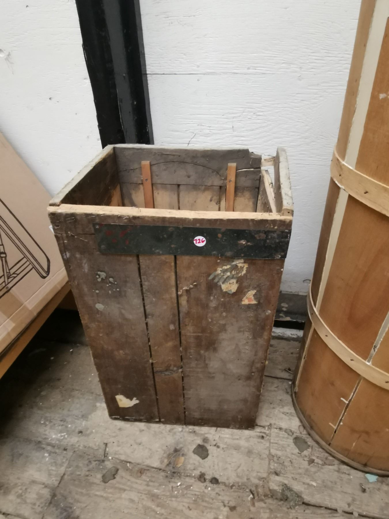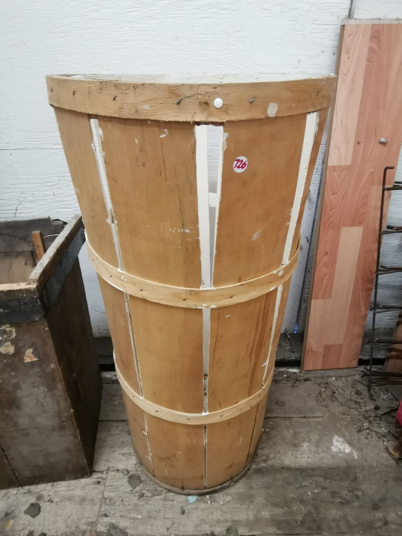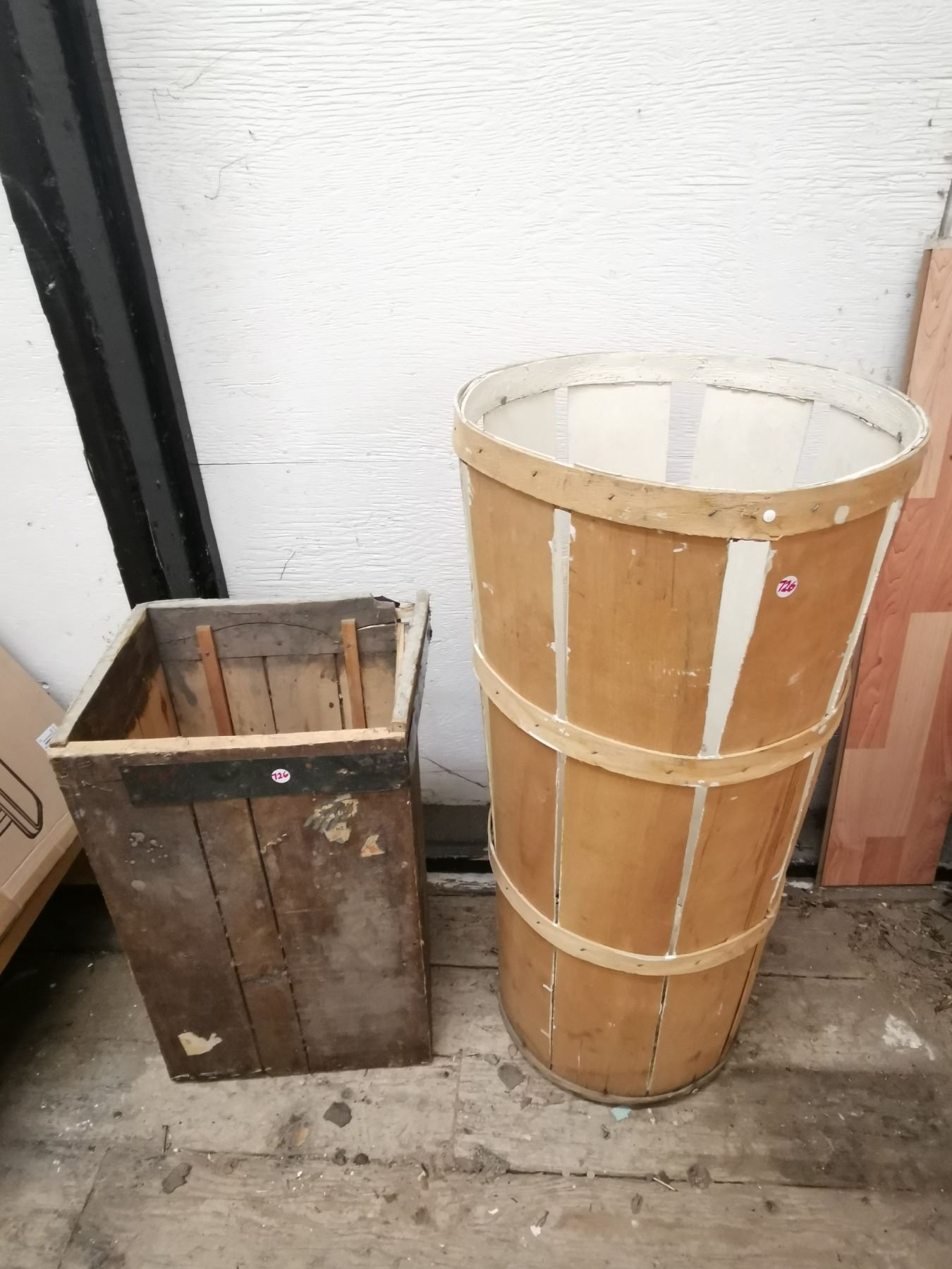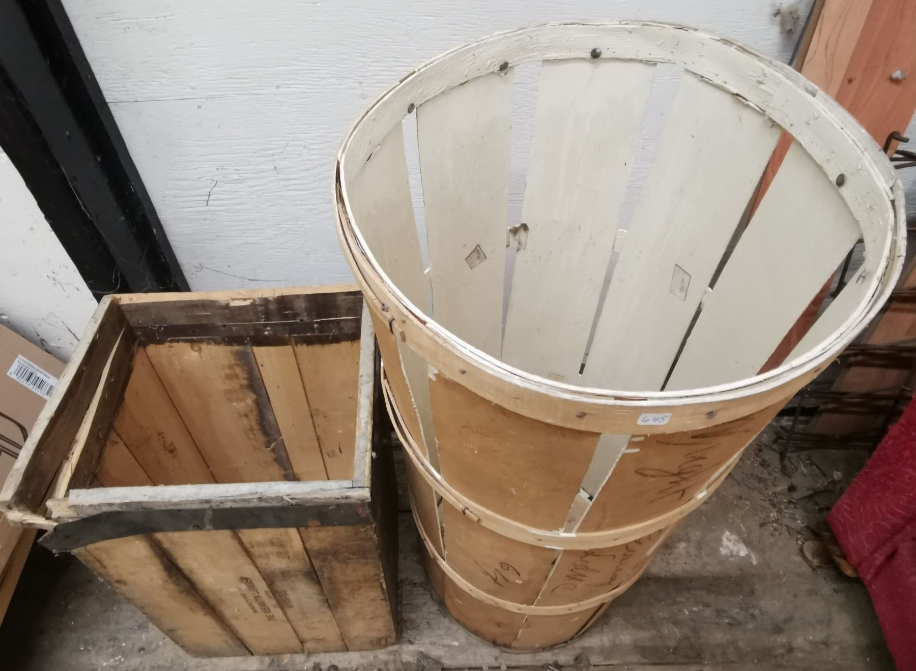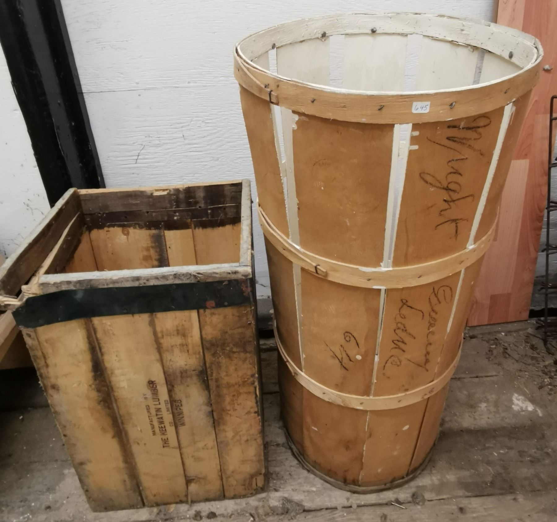 Wooden Lata bin 17.5" diameter x 36"High + Keewatin Lumber 12.75" x 15" x 23" (Only to Storage items, No Other ITEMS)