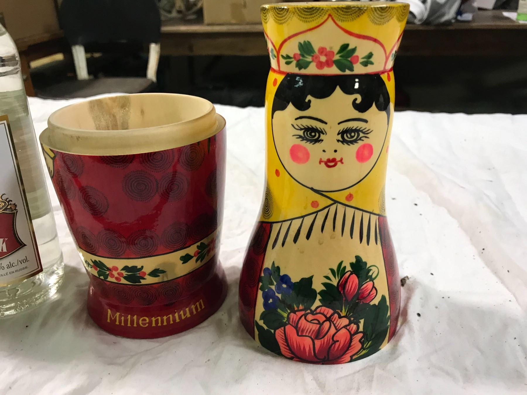 Wooden Russian Doll With Rodnik Vodka Inside