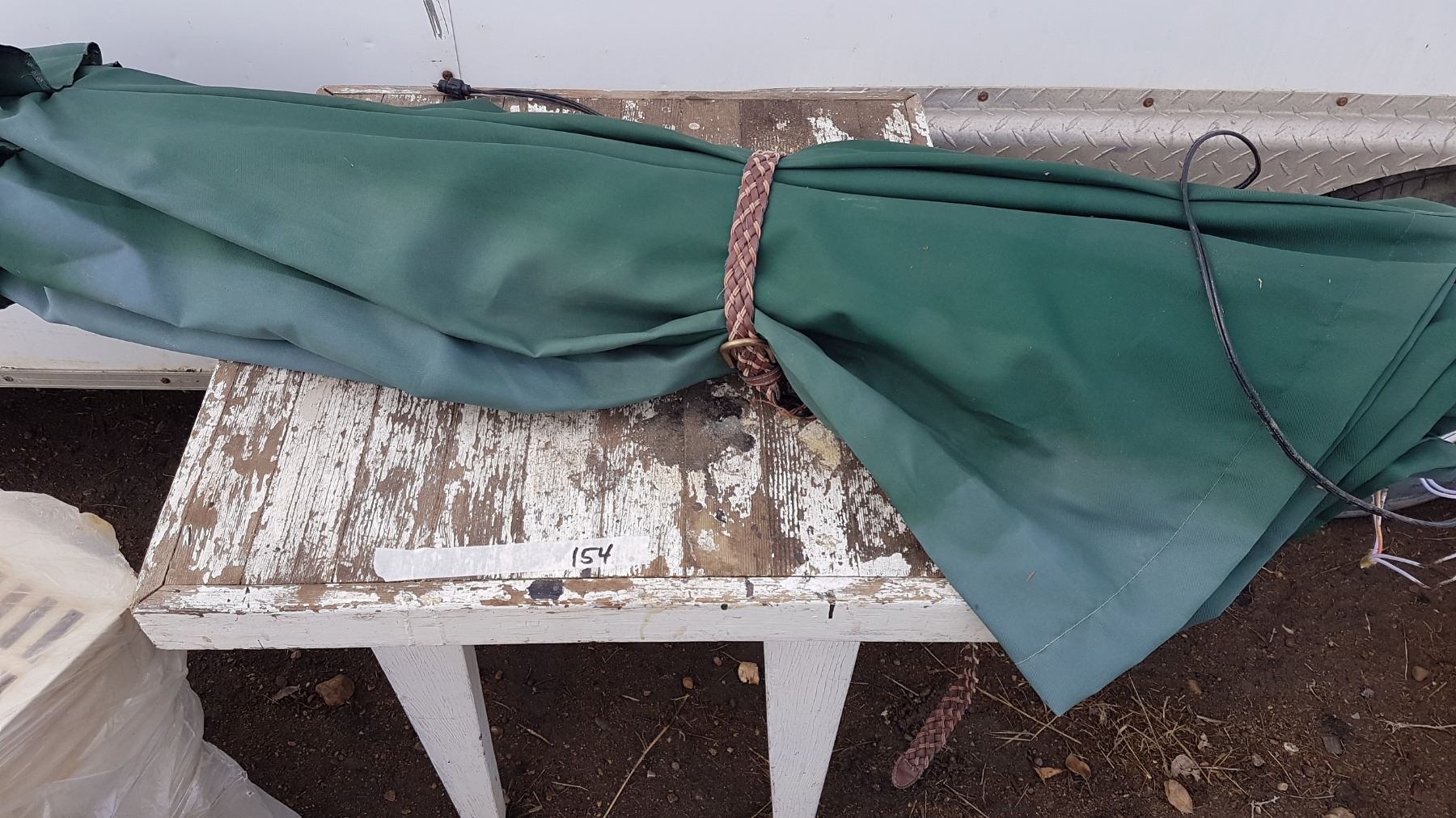 Wooden Table & Patio Umbrella