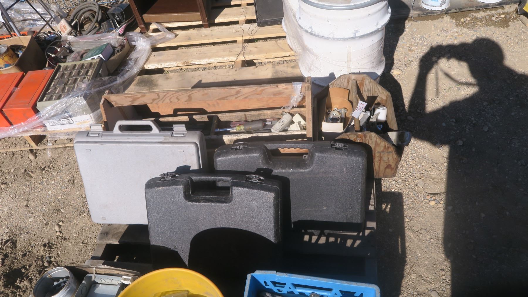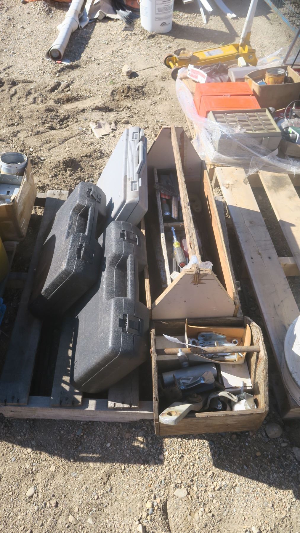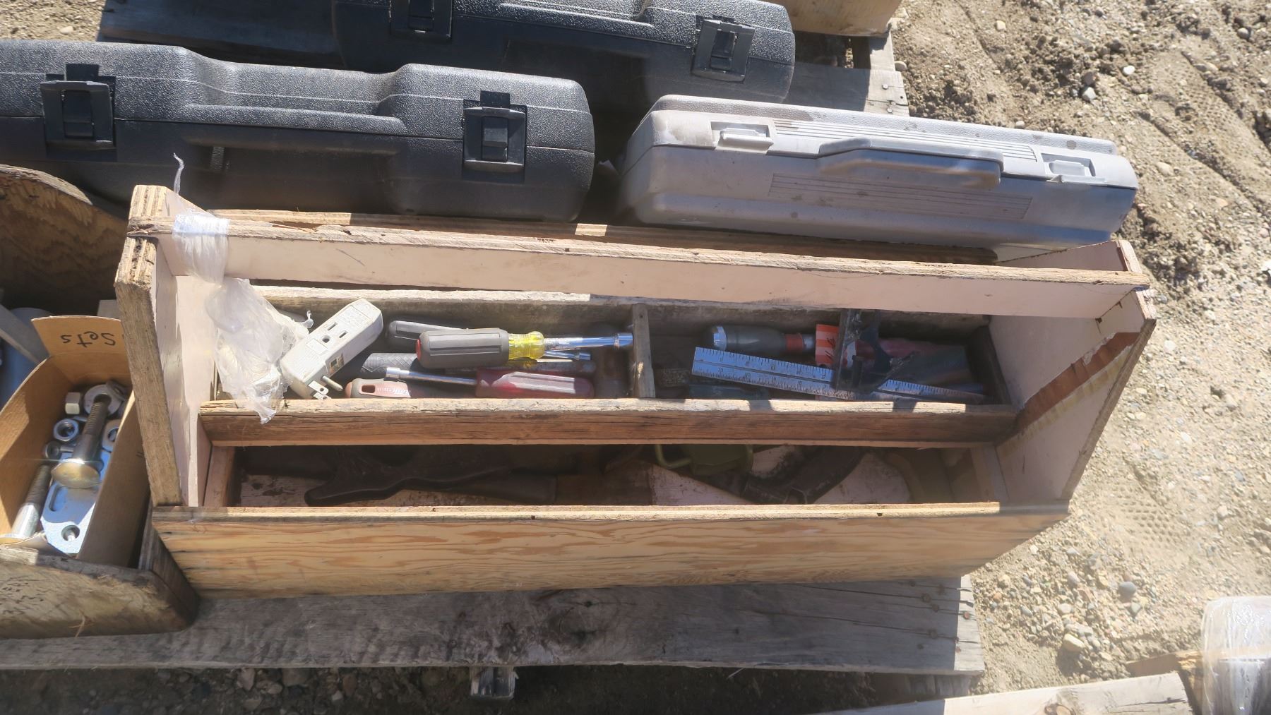 Wooden Tool Trays w/ Contents & 3 Plastic Tool Trays (empty)