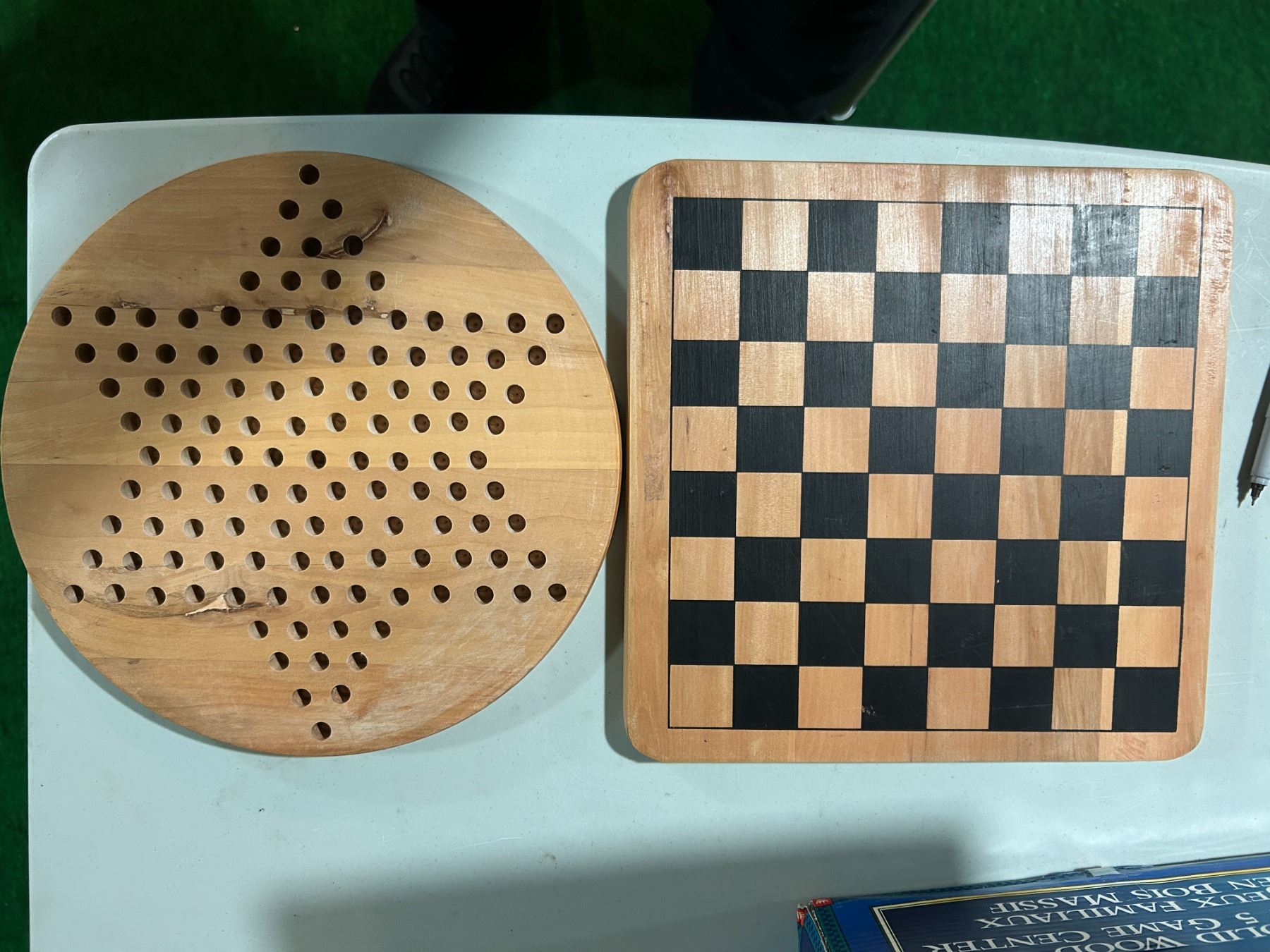 Wooden games with playing pieces