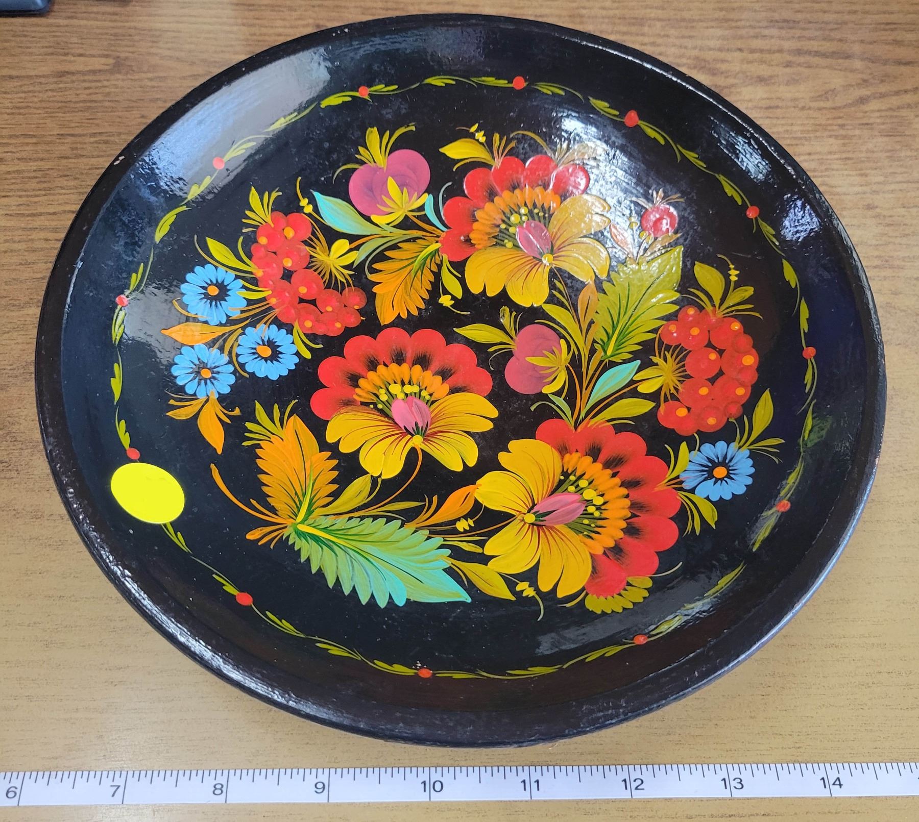 Wooden hand painted Ukrainian dish & wall hanger, from Ukraine