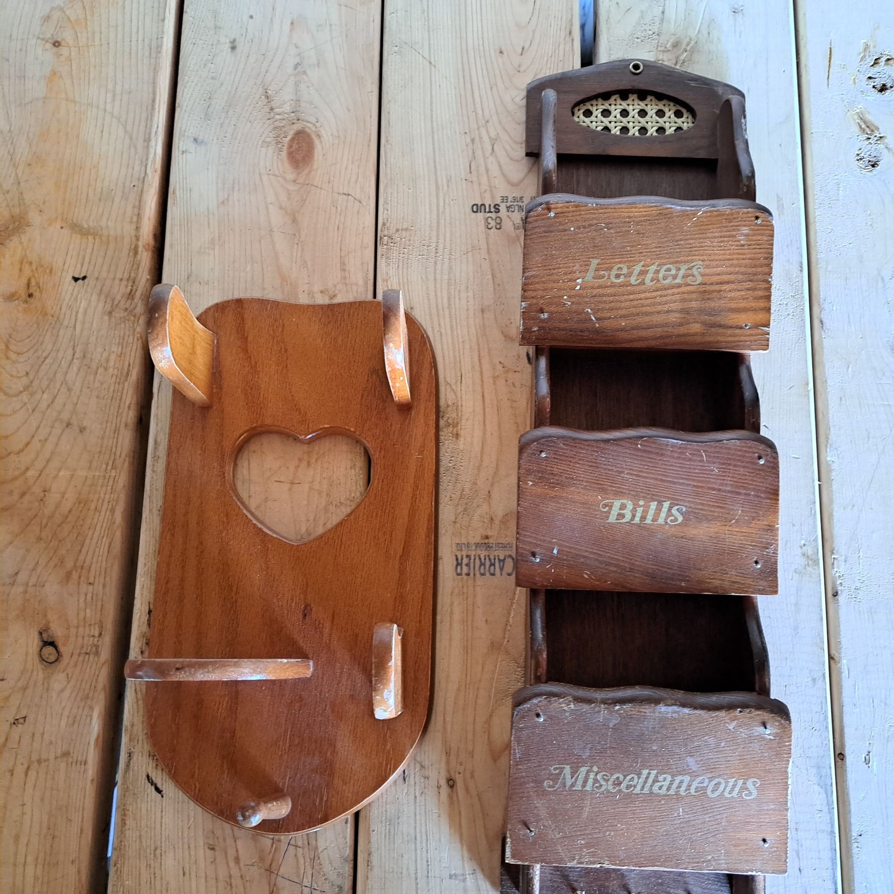 Wooden letter and bill holder and wooden coat rack shelf combo