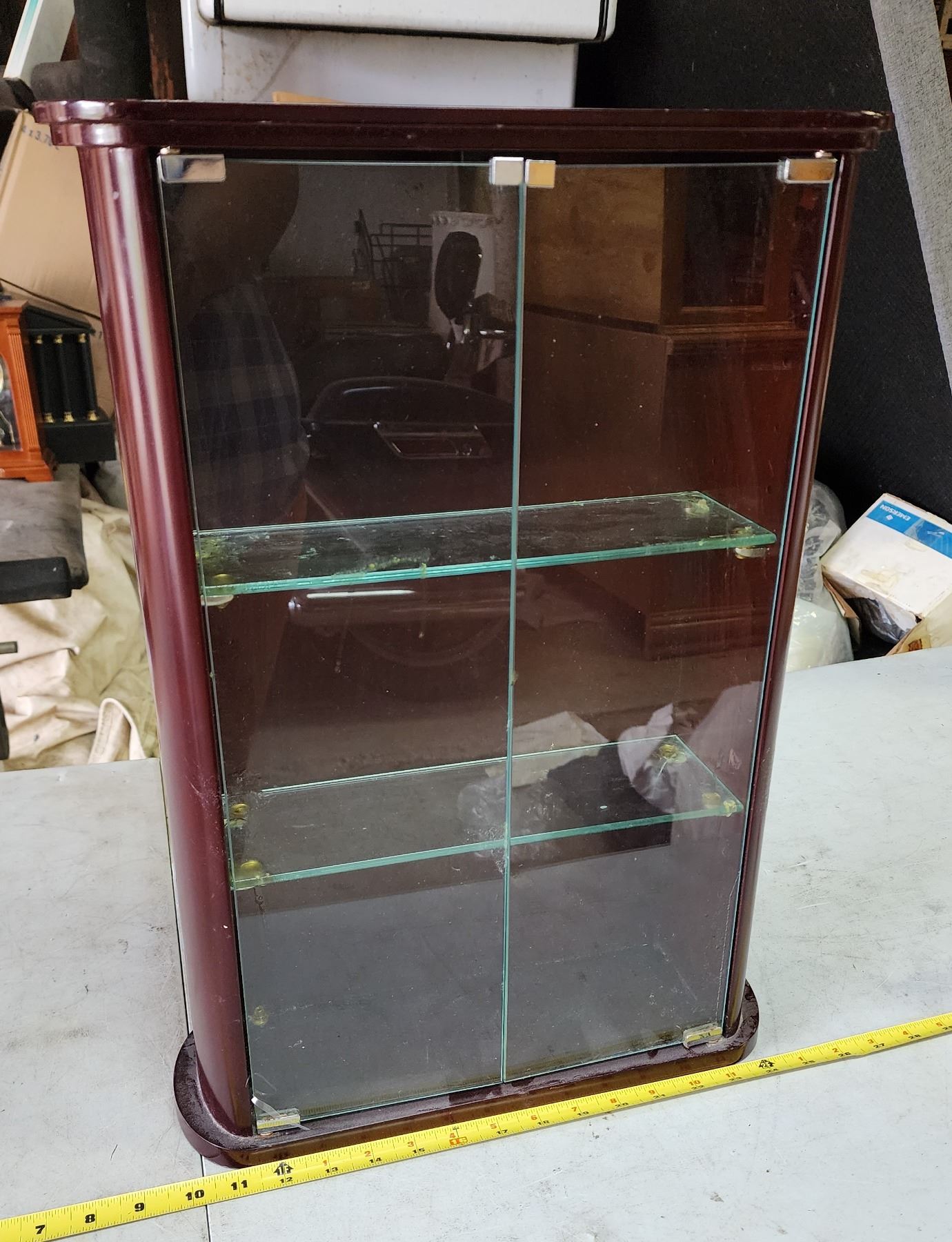 Wooden showcase, with glass doors and shelves - 21"H x 15"W x 5"D