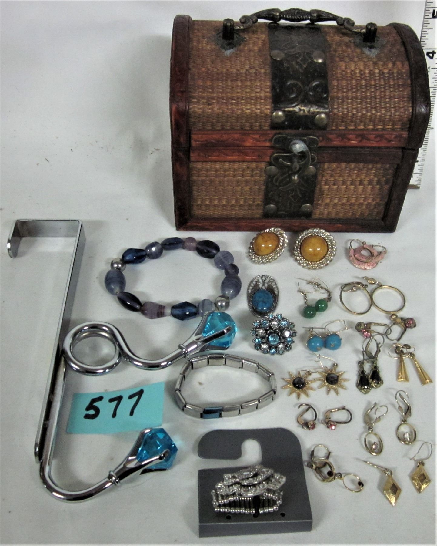 13 pairs assorted pierced earrings, 2 rings, 2 bracelets, 1 pendant