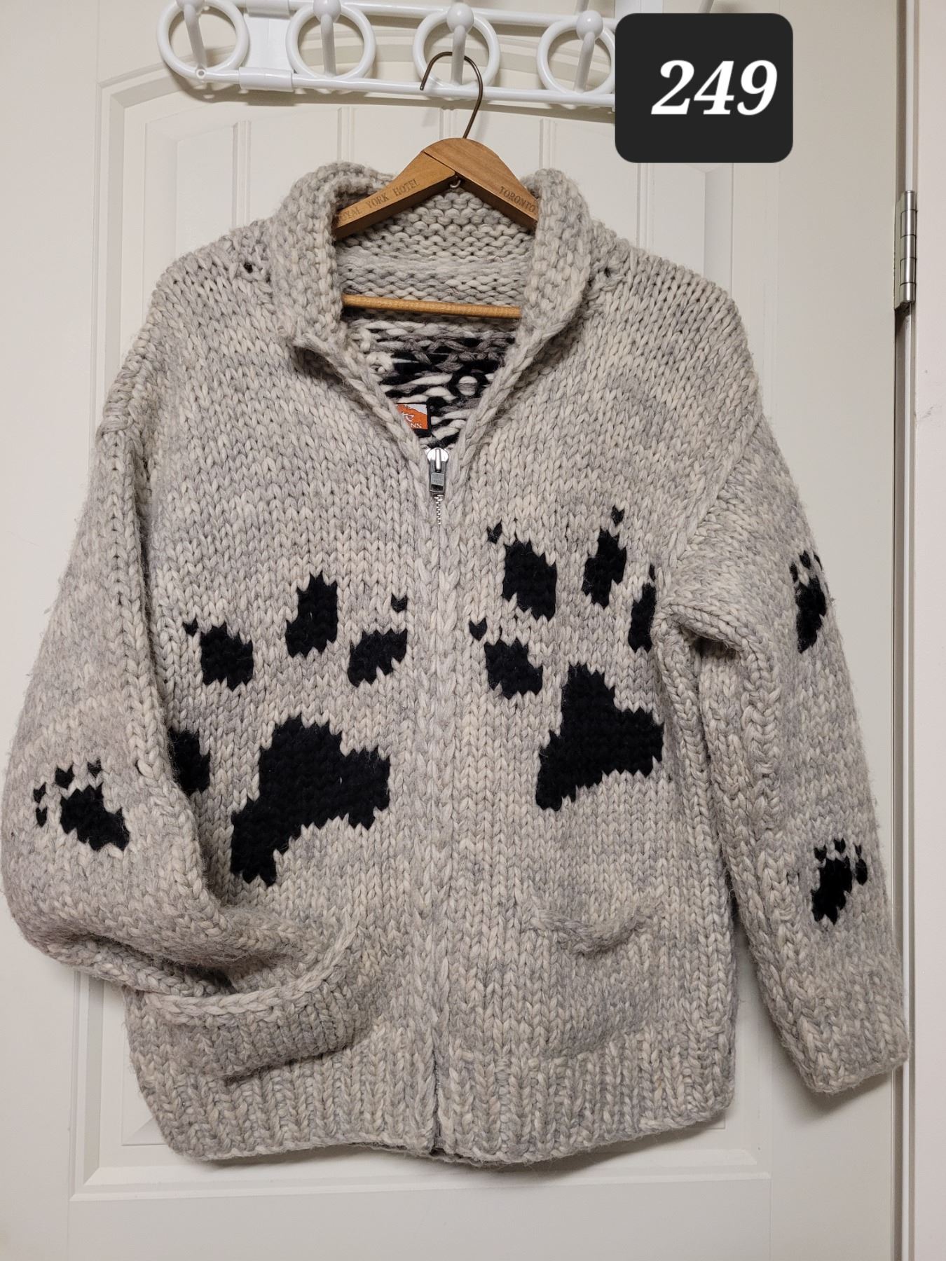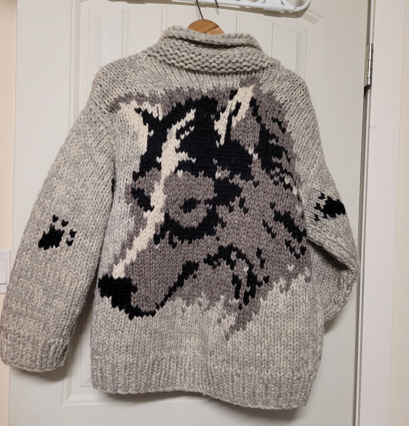 Wool siwash. Nameste woolens. Wolf pattern paw print, pockets & metal zipper.