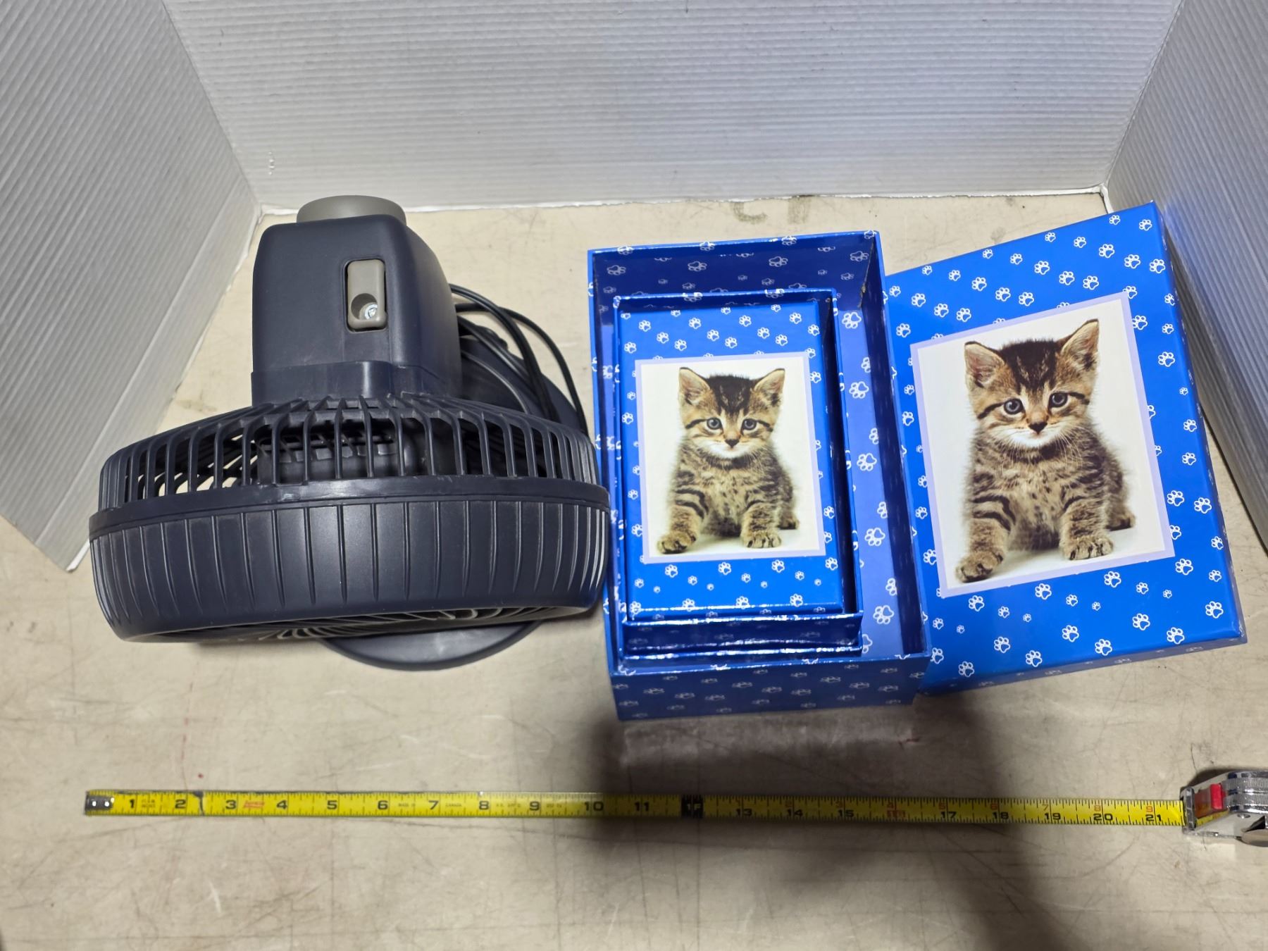 Working desk fan and storage boxes