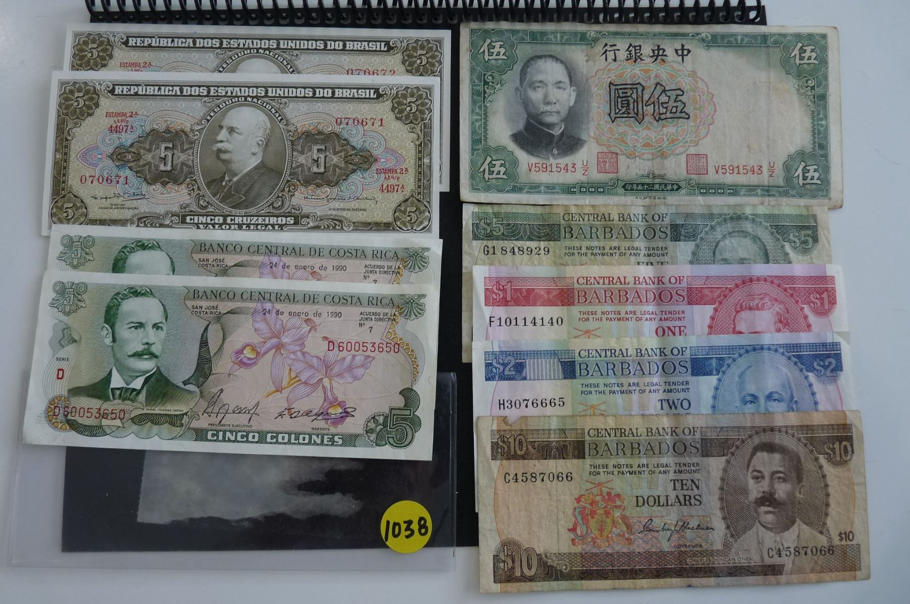 World Lot of 9 Notes Brazil, China, Costa Rica, Barbados