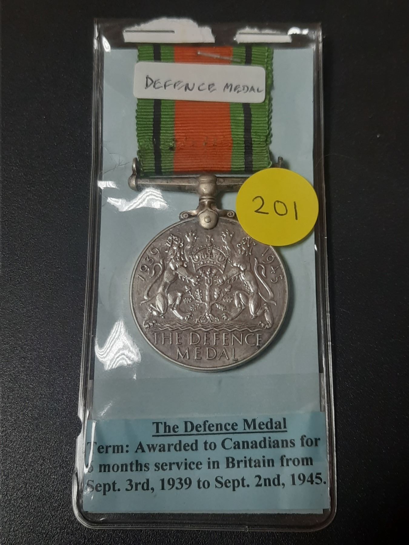 World War II Defence Medal. Awarded for 3 year’s service at home, 1 year’s service in a non-operational area, or 6 month’s service in an area under attack. Correct ribbon.