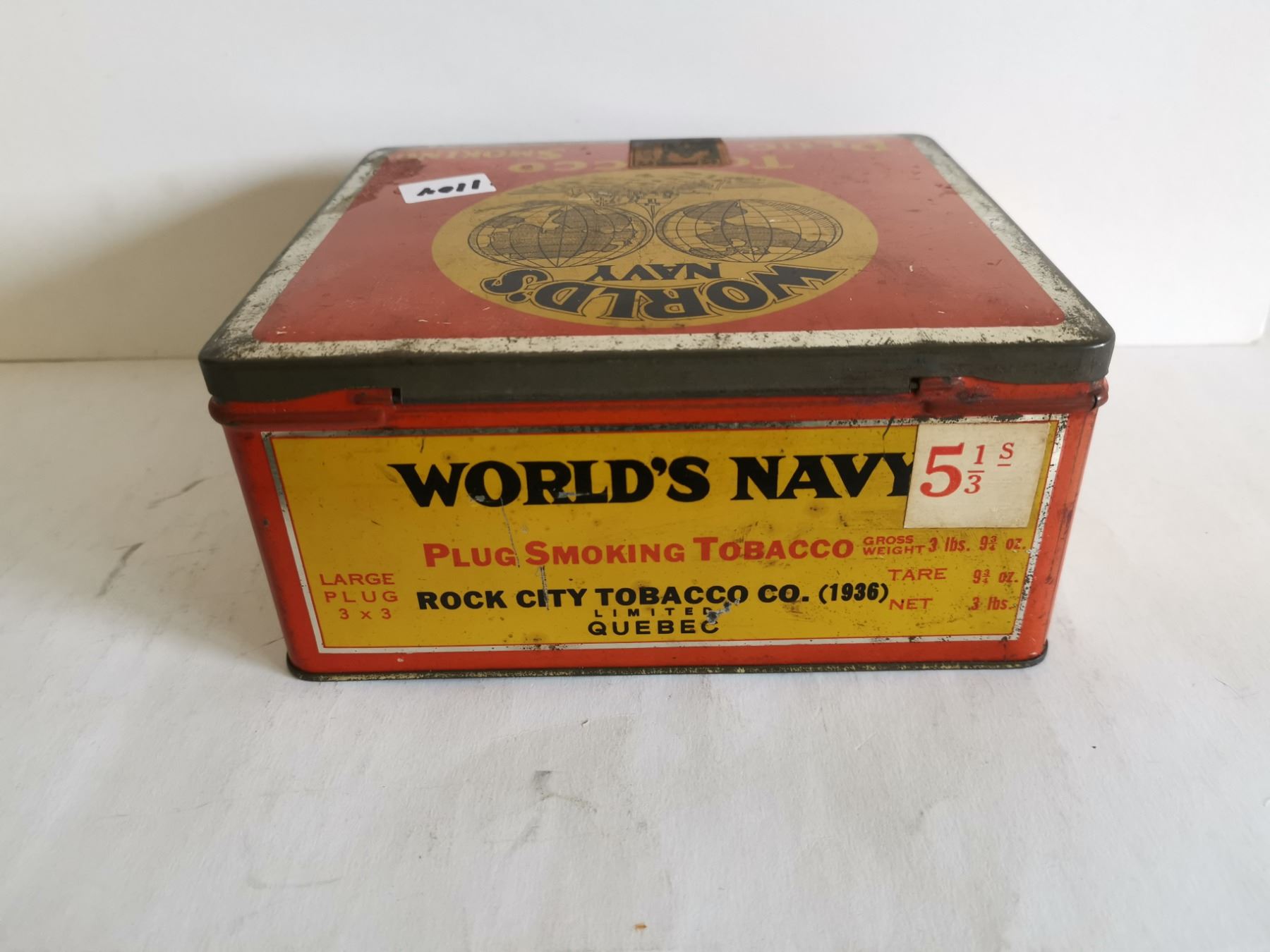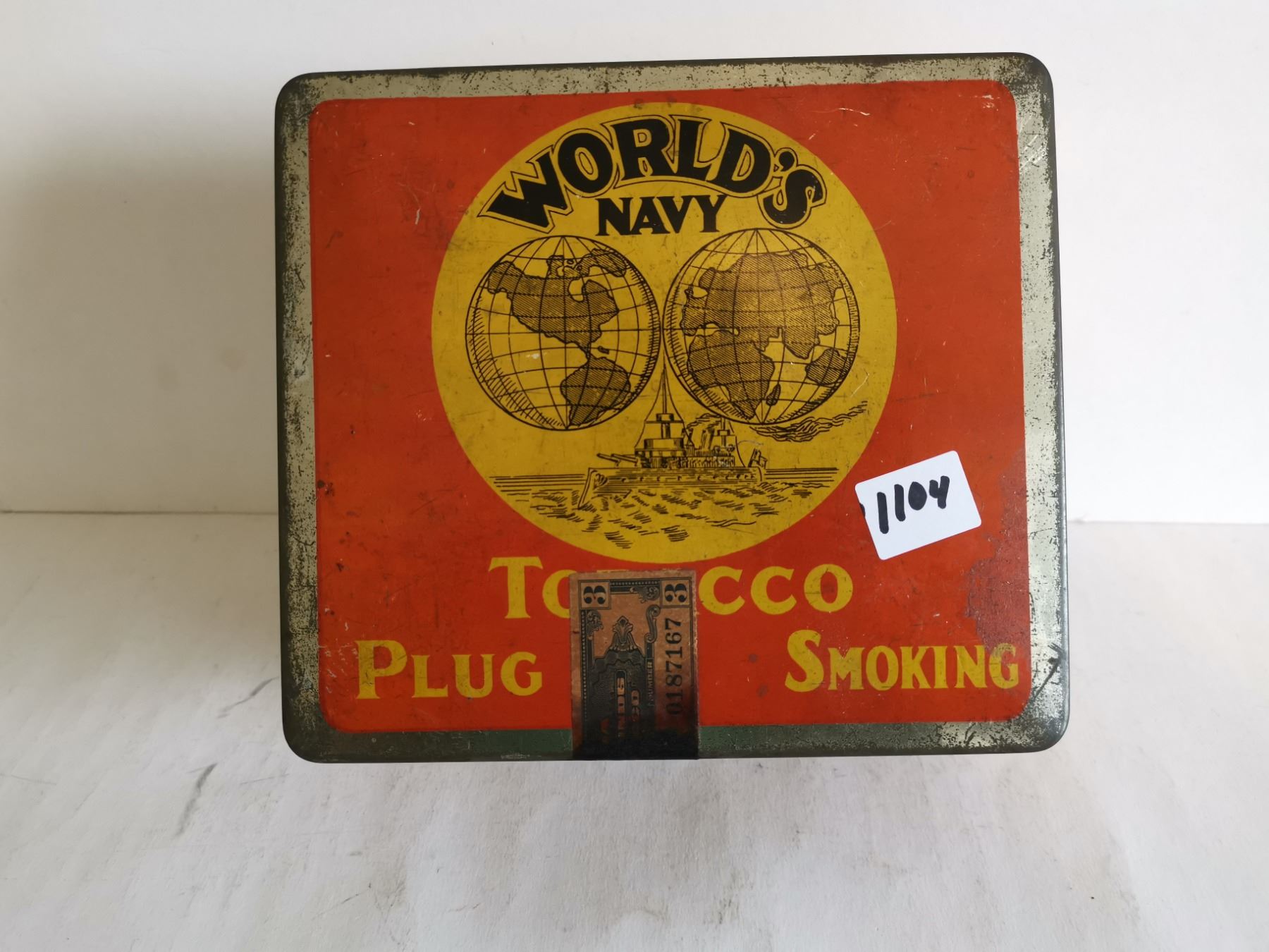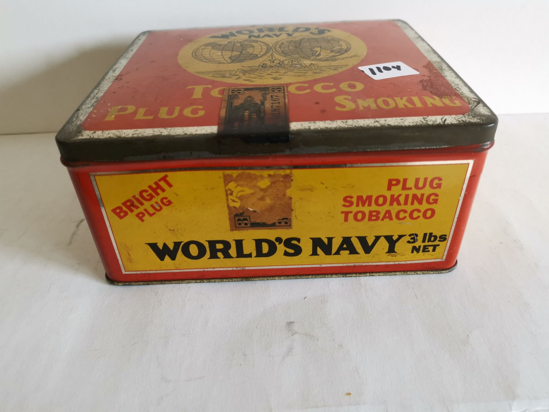 World navy tobacco tin 7x6x3