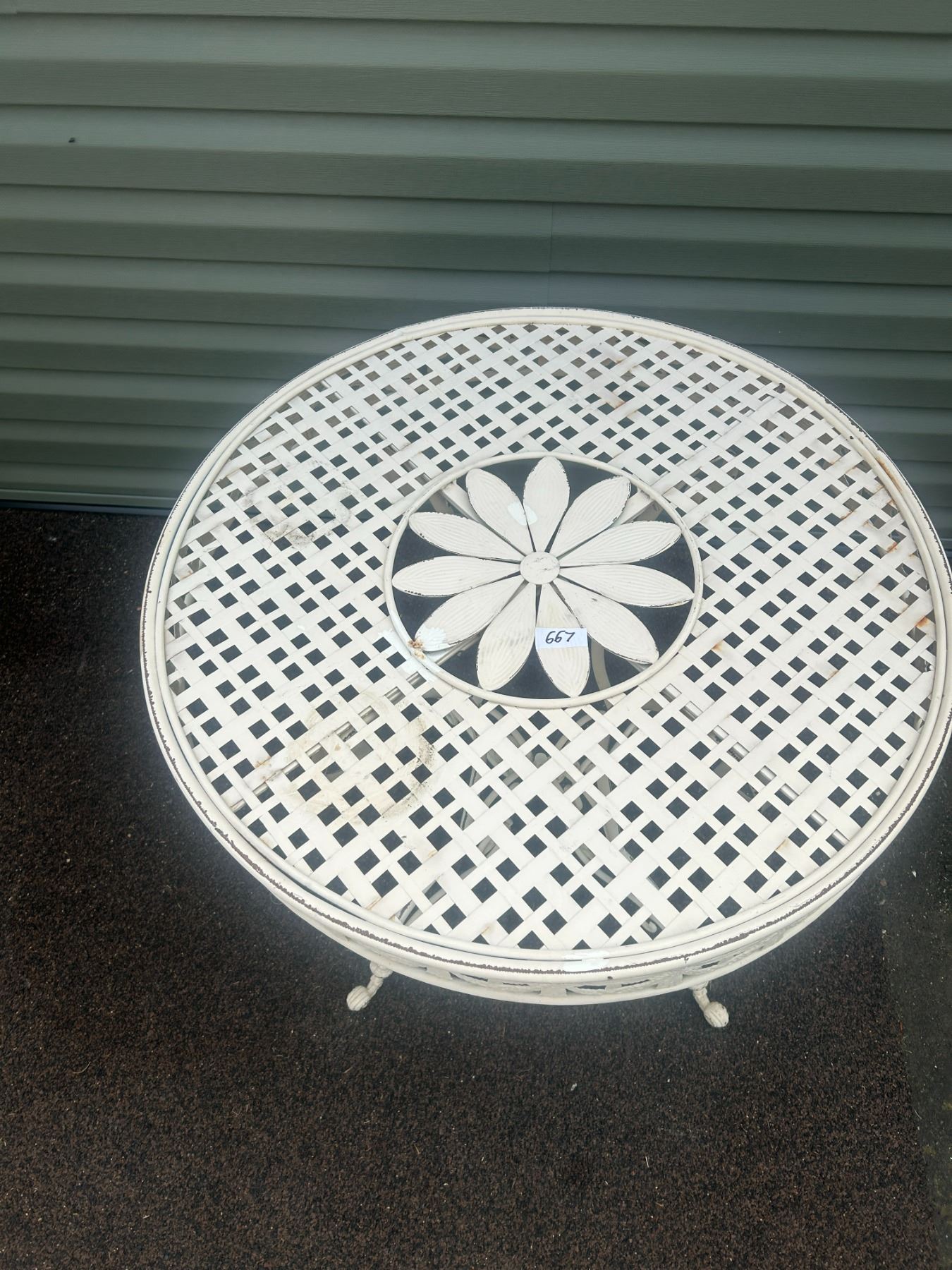 Wrought iron garden or deck table "ornate" 31" round-29" high