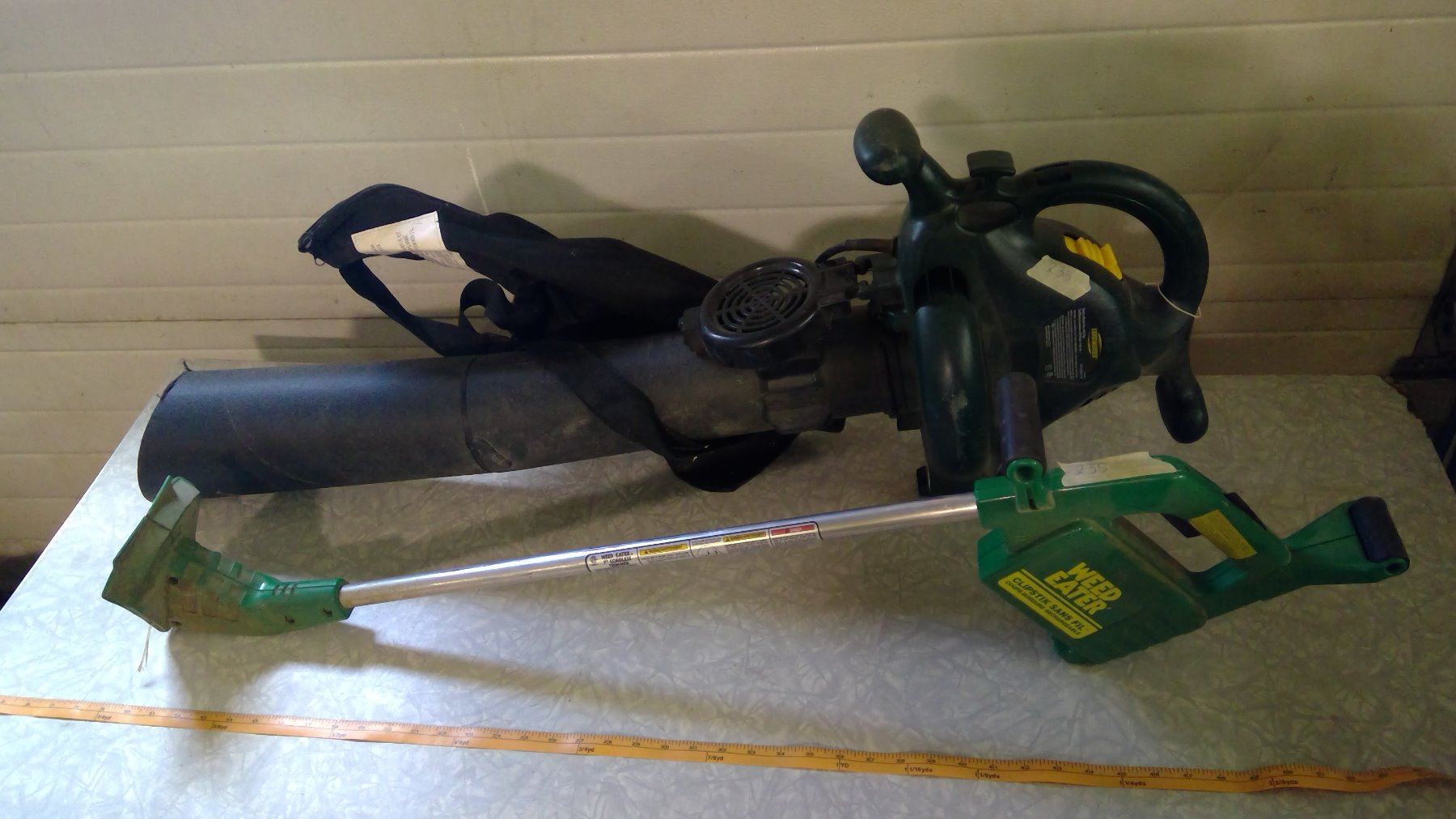 YARD WORKS LEAF BLOWER (NO BATTERY) AND WEED EATER (MISSING COVER)