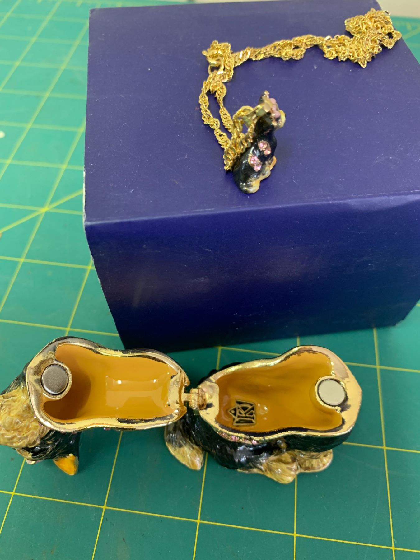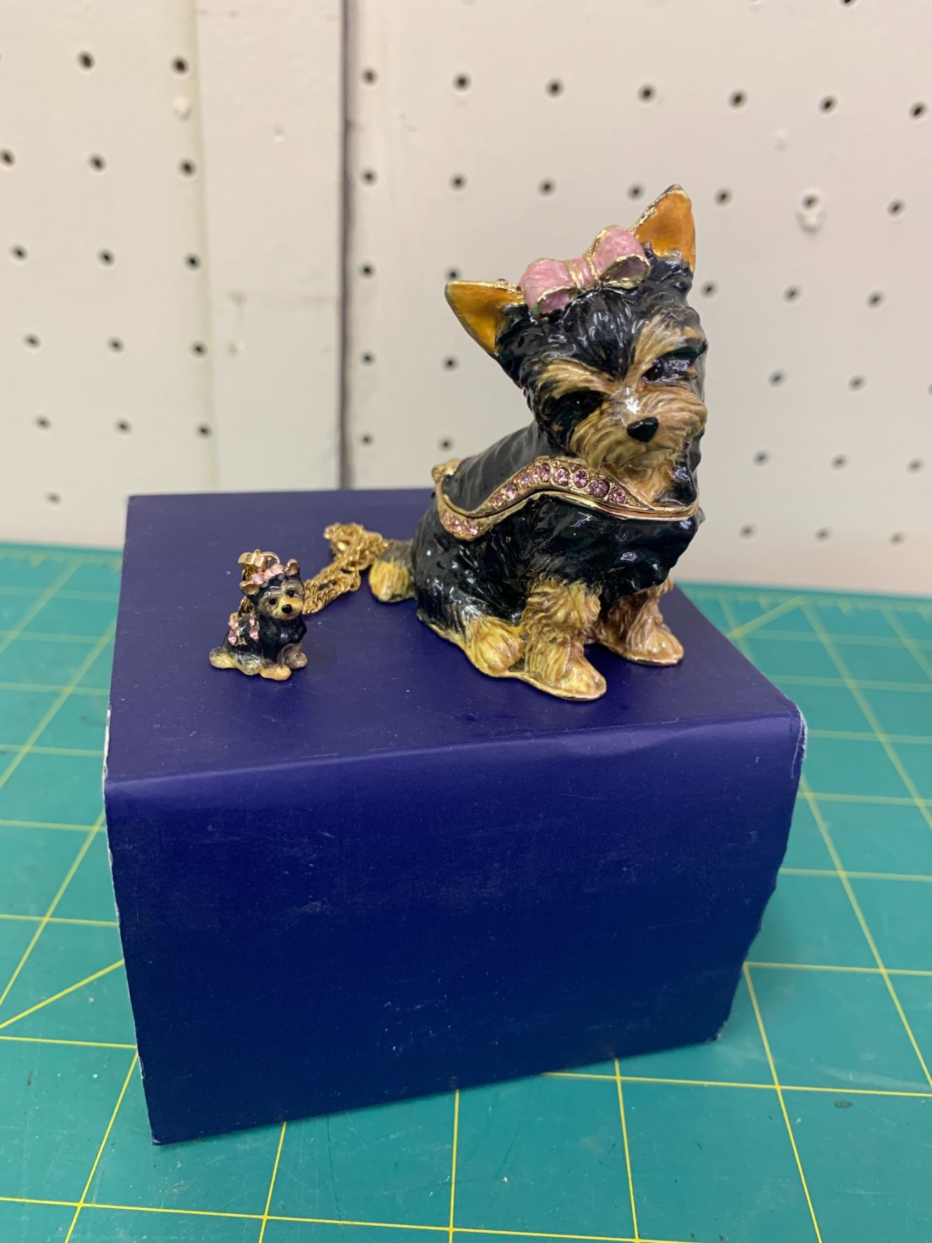 YORKIE KINGSPOINT DESIGNS ENAMEL DOG TRINKET BOX AND MATCHING PENDANT