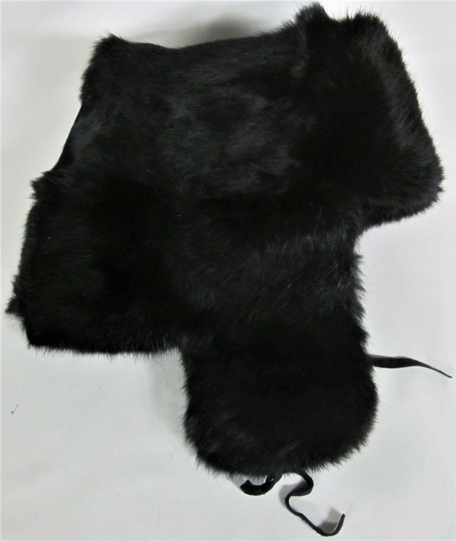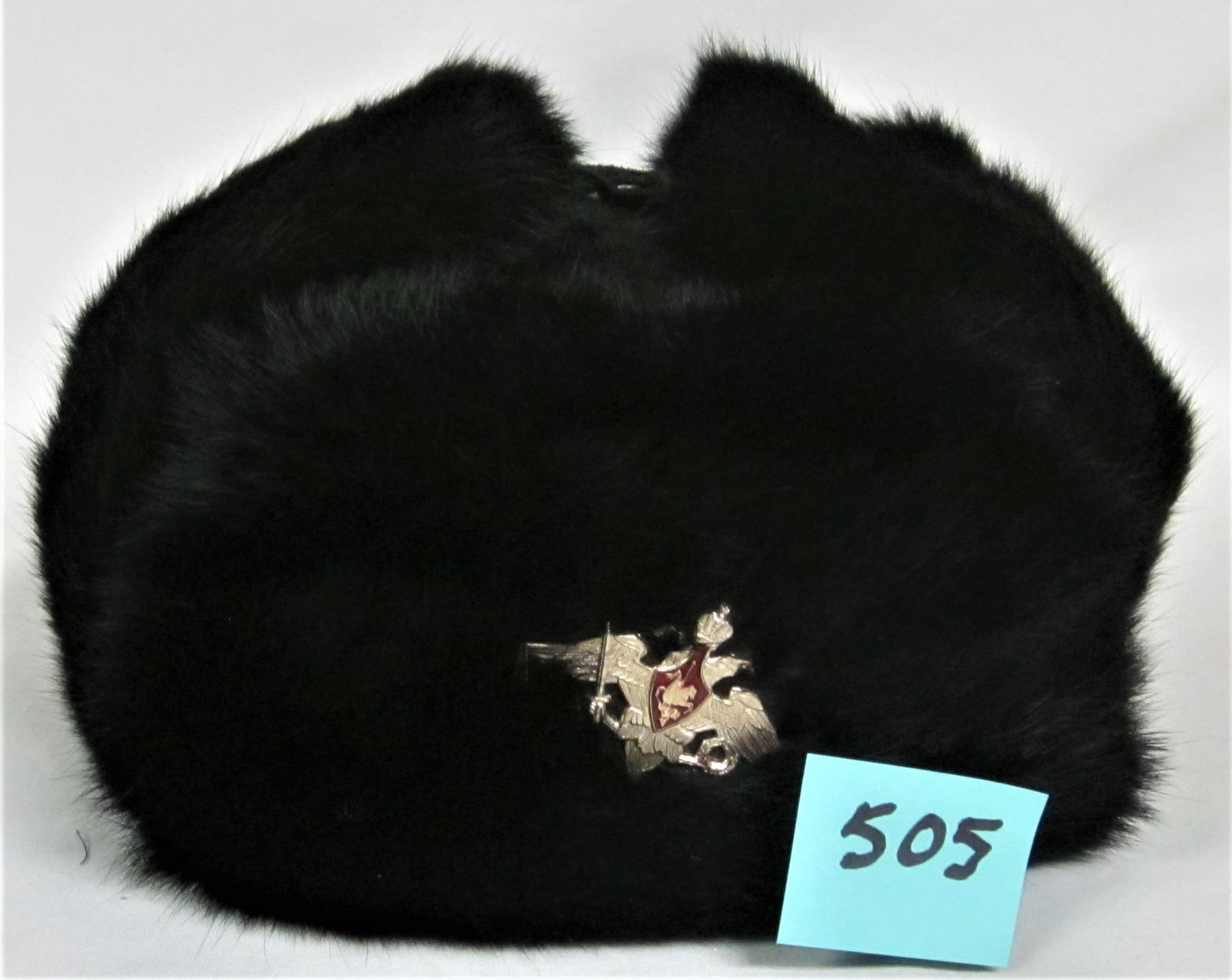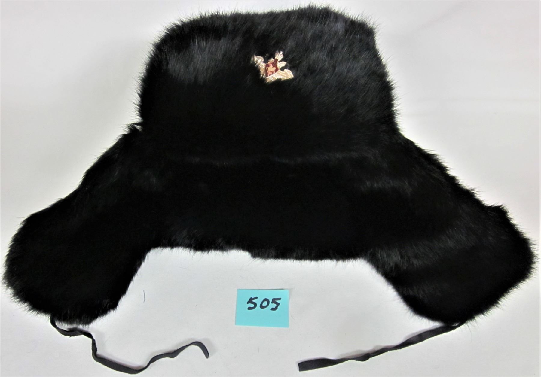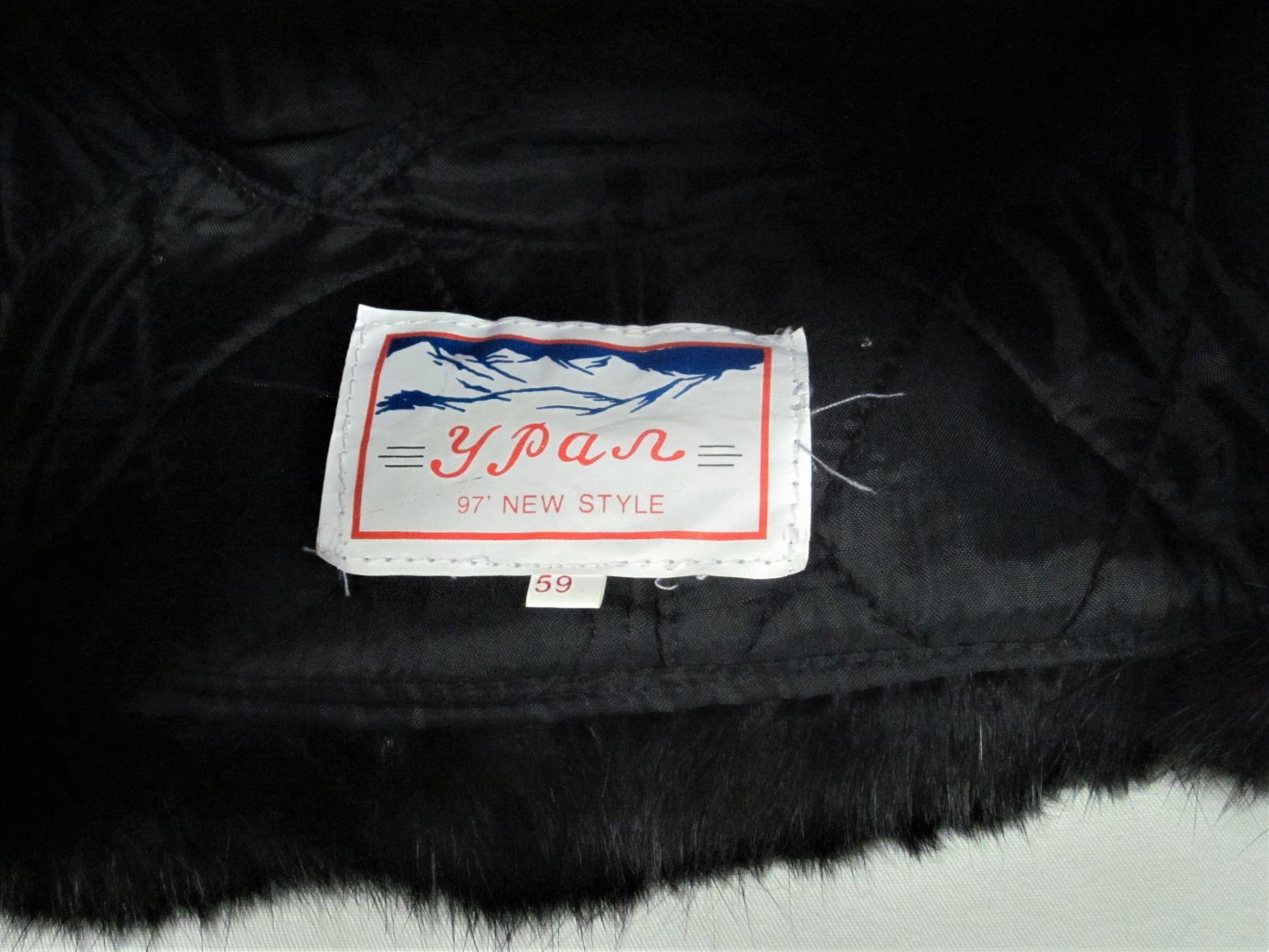 YPAN size 59 Russian Ushanka black fur winter hat with flaps & military badge