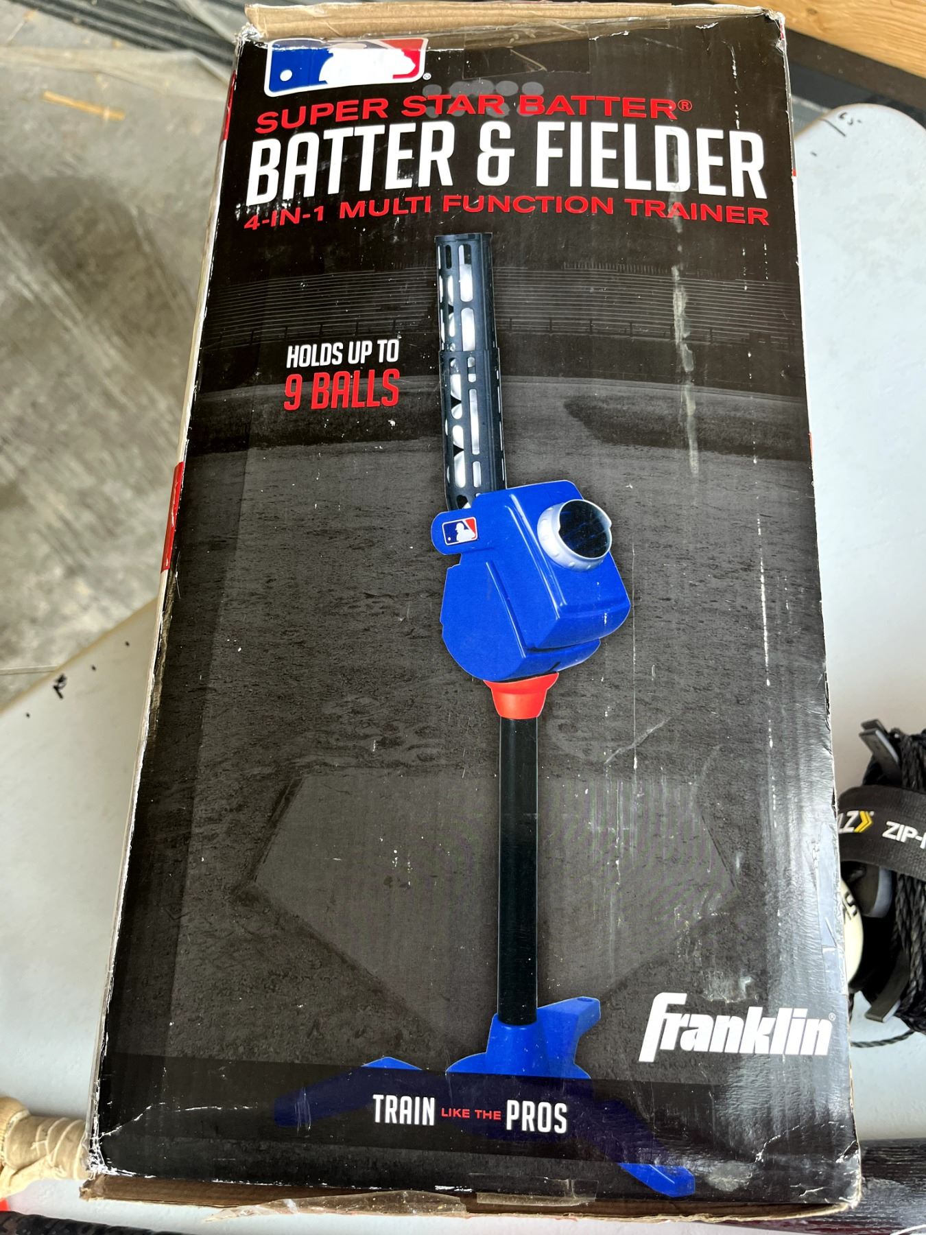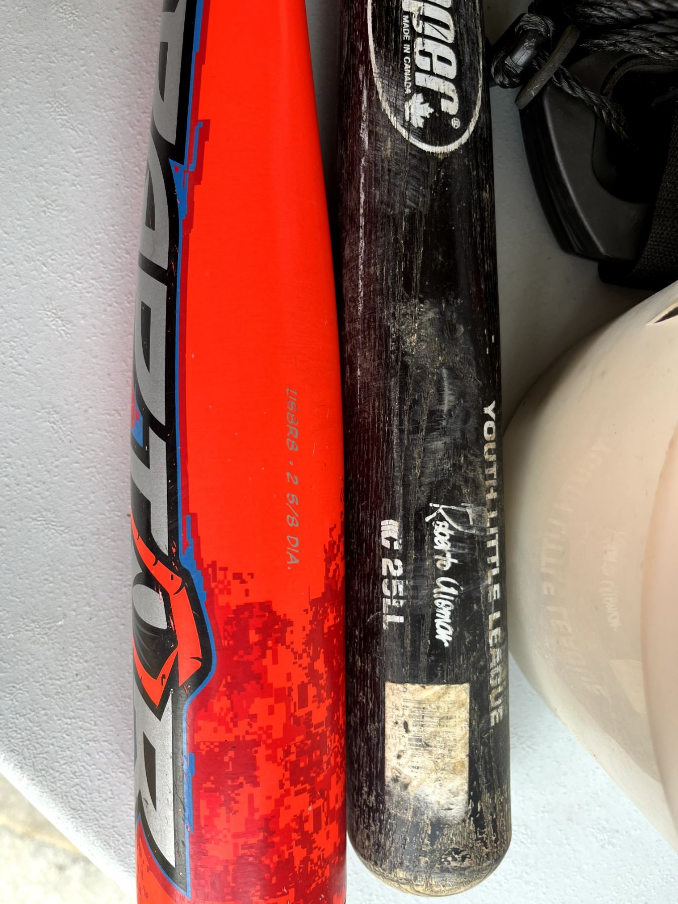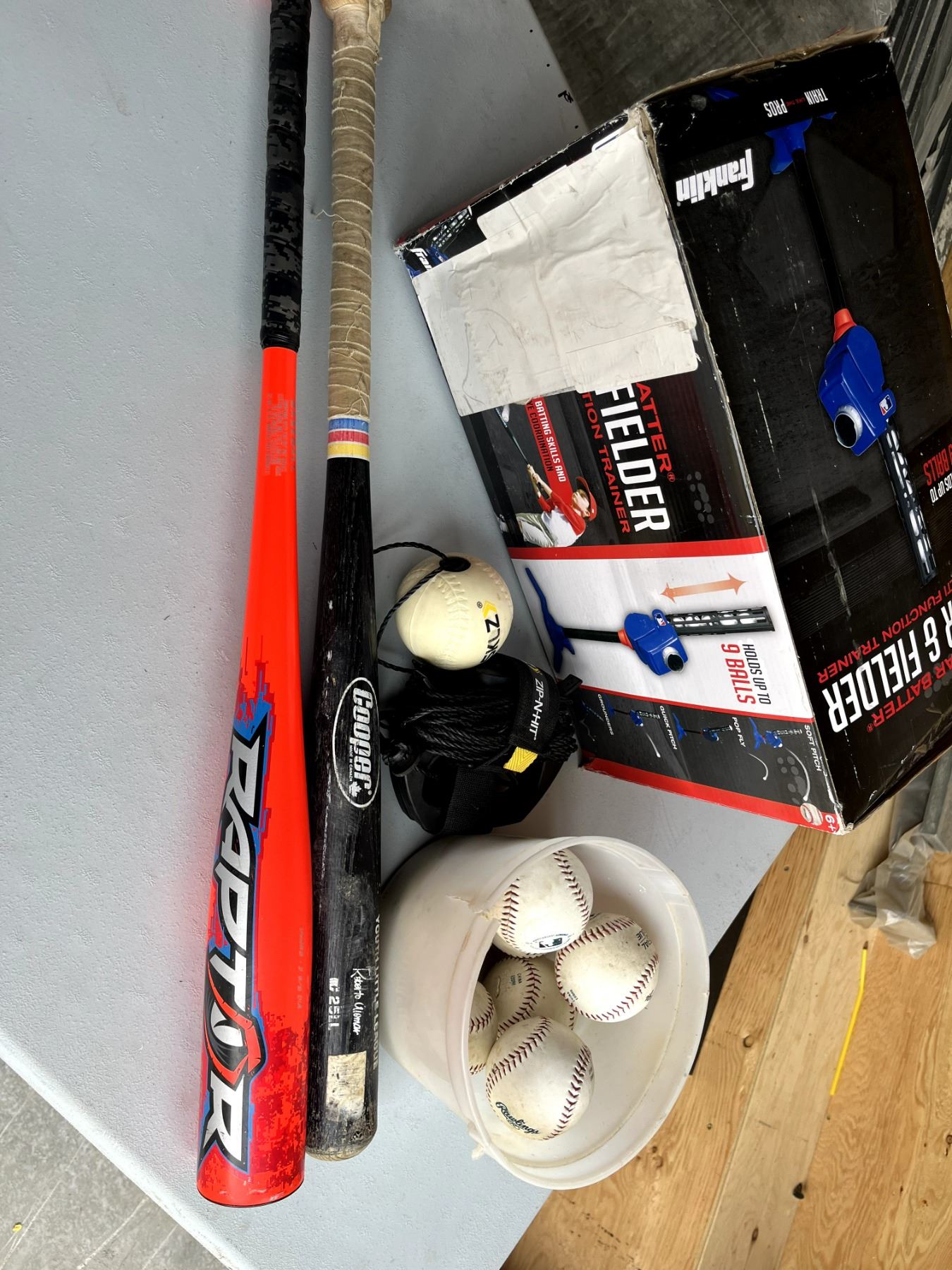 2 Bats - 1 Rawlings Aluminum (30", 22oz) & 1 Coooper Wood, Automatic Batter/Fielder (never used, in box), Zip-n-Hit Trailer