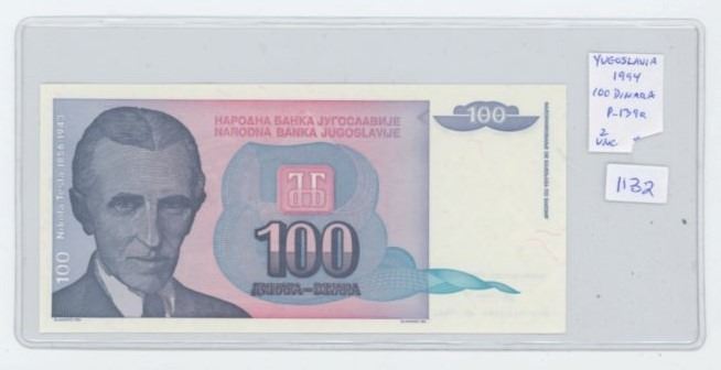 Yugoslavia. 1994 100 Dinara. High Denomination Note. P-139a. Unc. Nice.