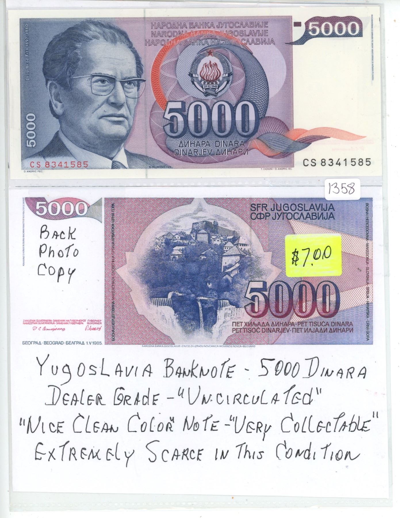 Yugoslavia Banknote - 5000 Dinara - Uncirculated, crisp, scarce