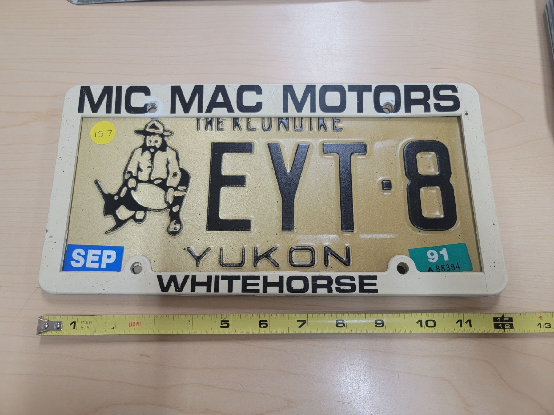 Yukon "The Klondike" license plate EYT-8 w/ Mic Mac Motors Whitehorse frame