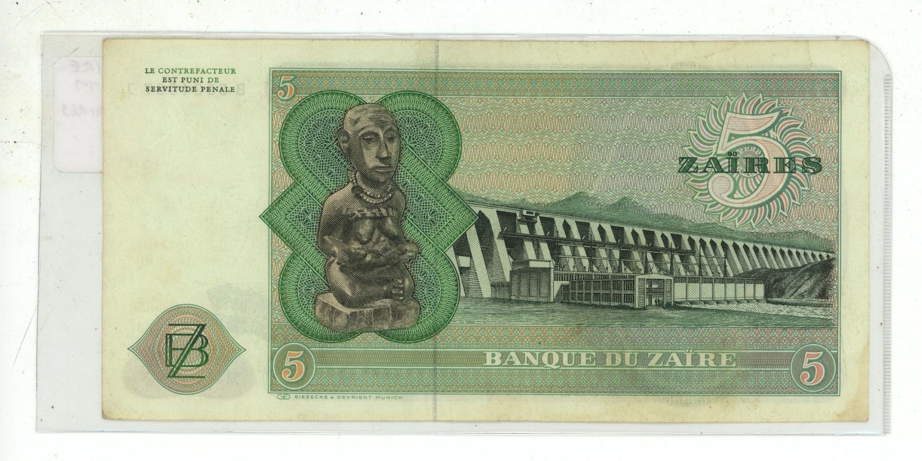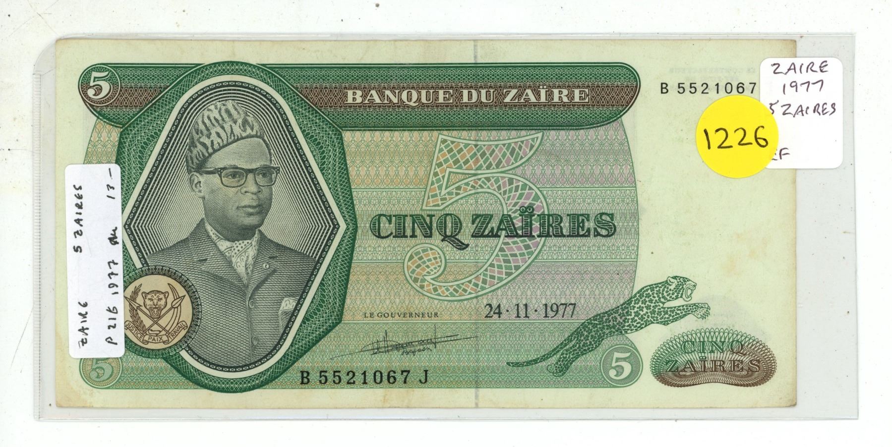 Zaire. 1977 5 Zaires. President Mobutu. EF.