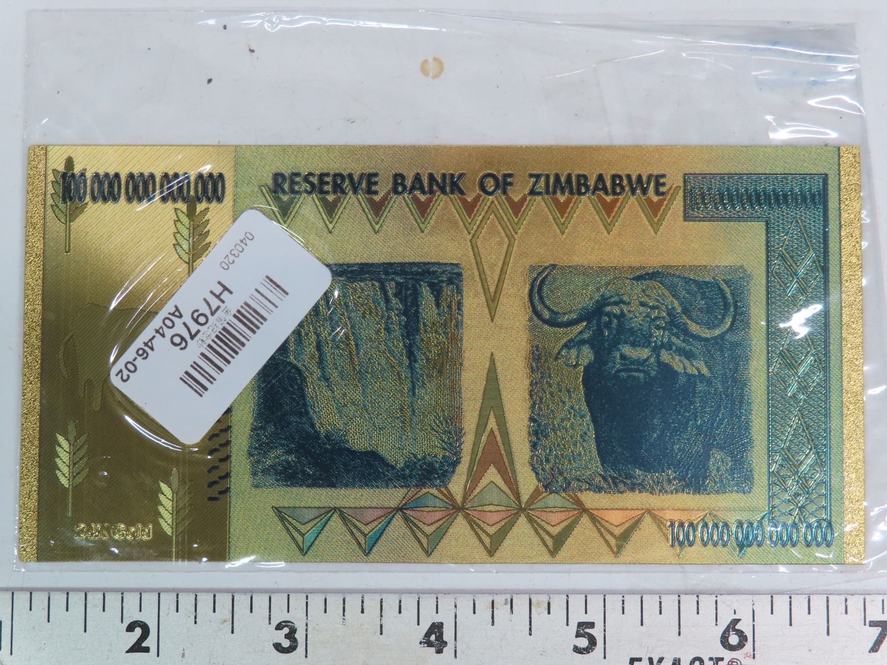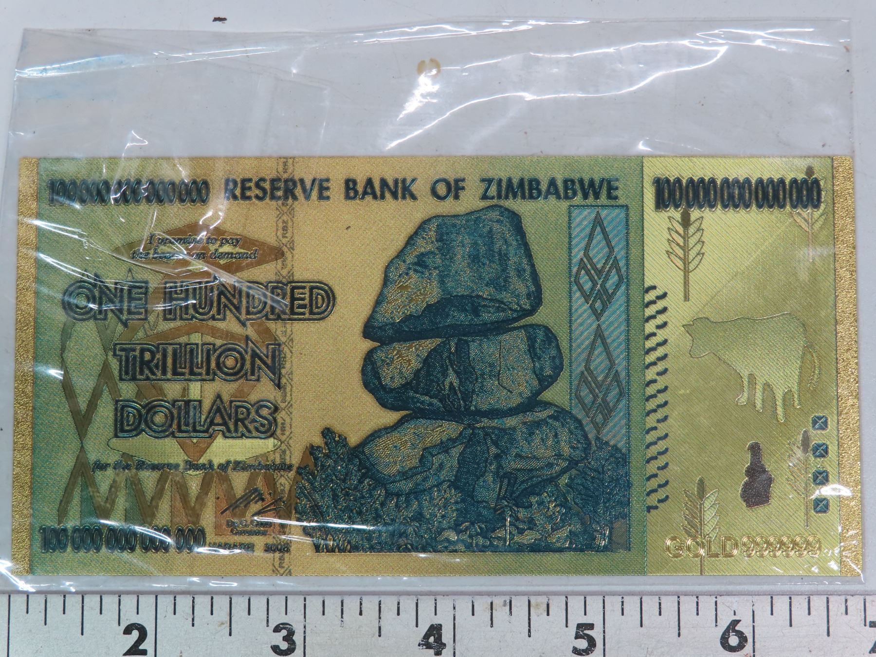 Zimbabwe Dated/expired Dec, 08 "1 hundred trillion dollars" Gold plated