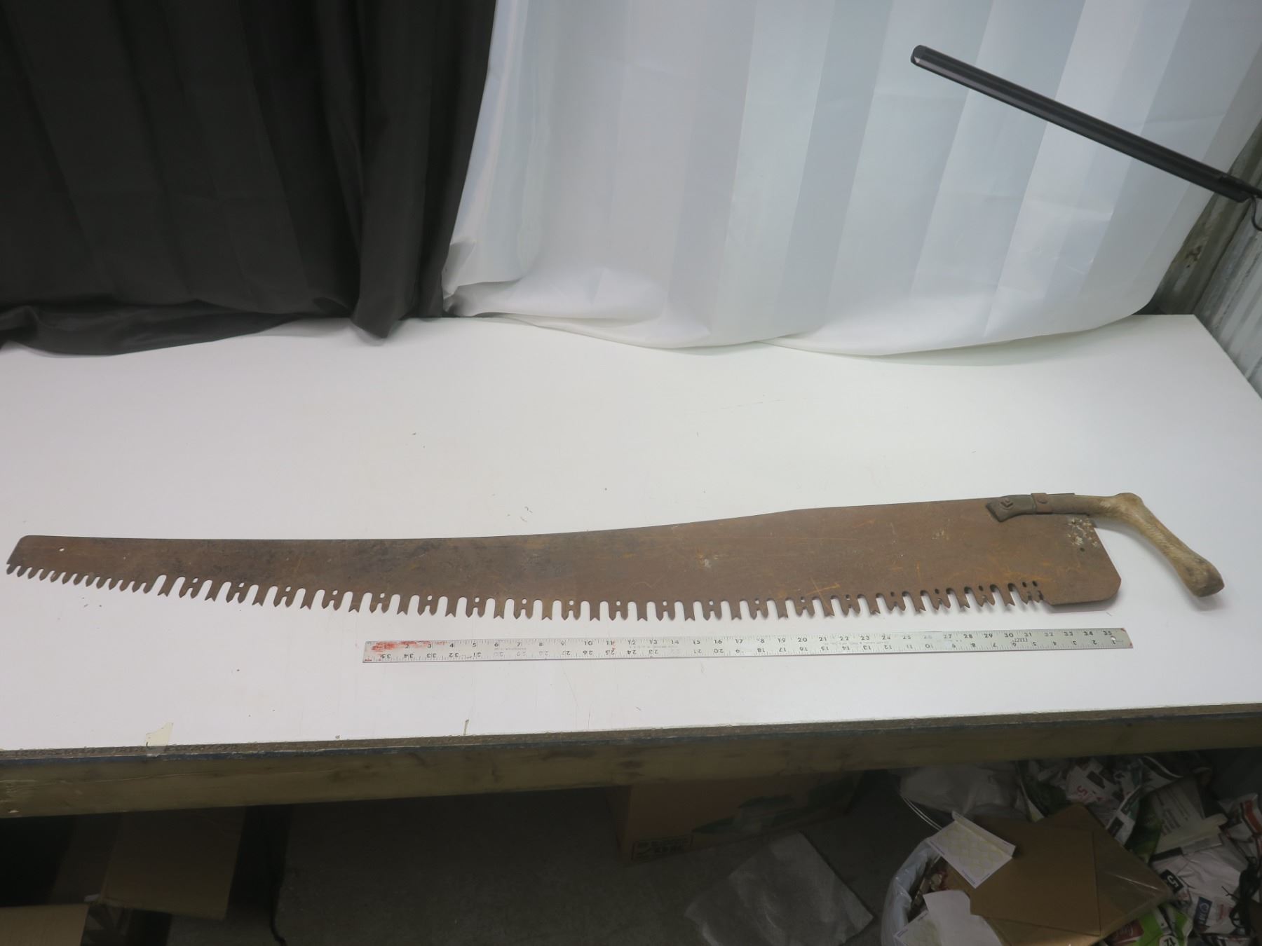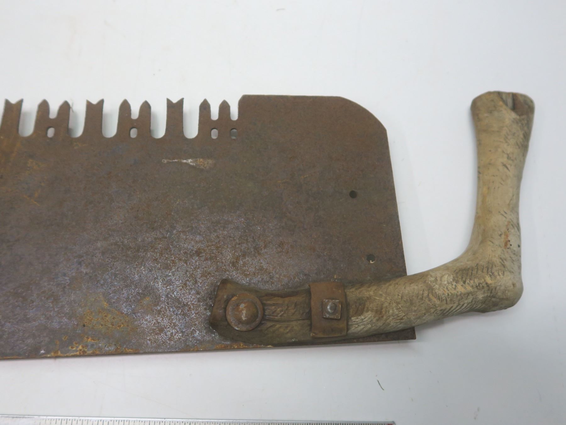 antique 53" crosscut saw with homemade handle