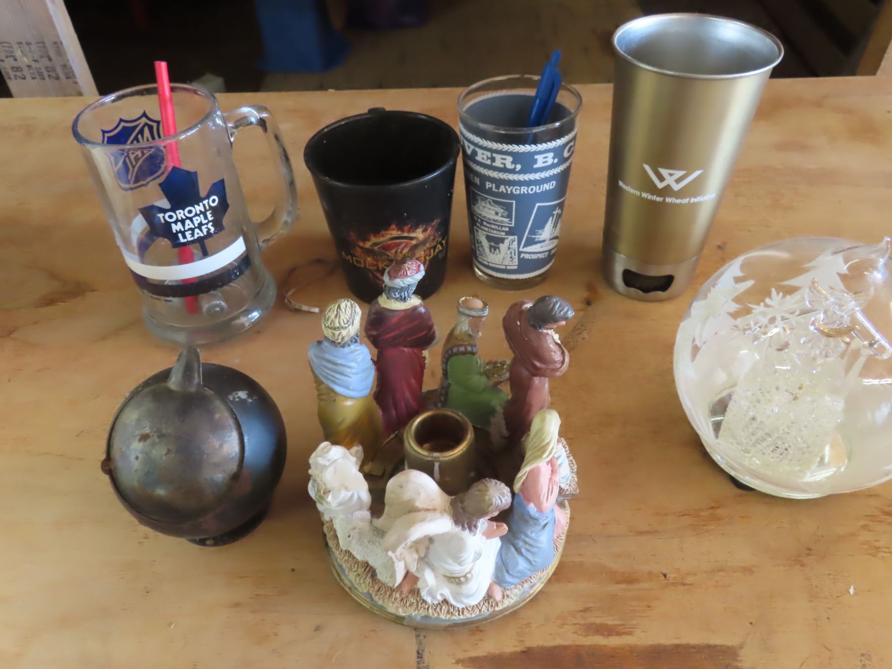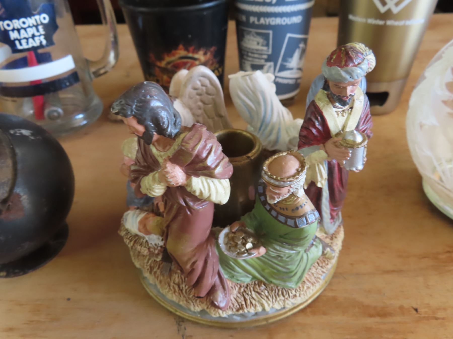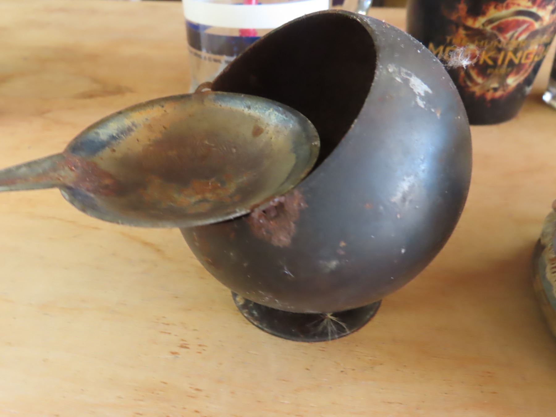 antique ashtray , cups , collectible candle holders