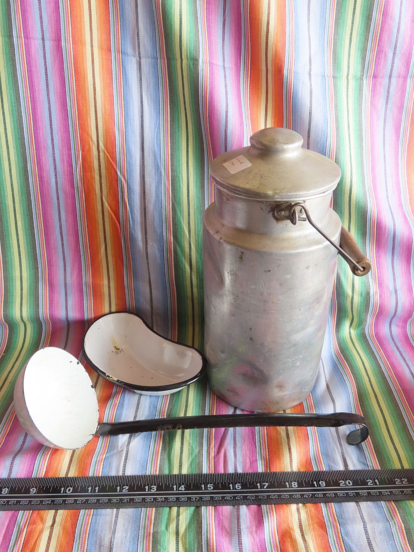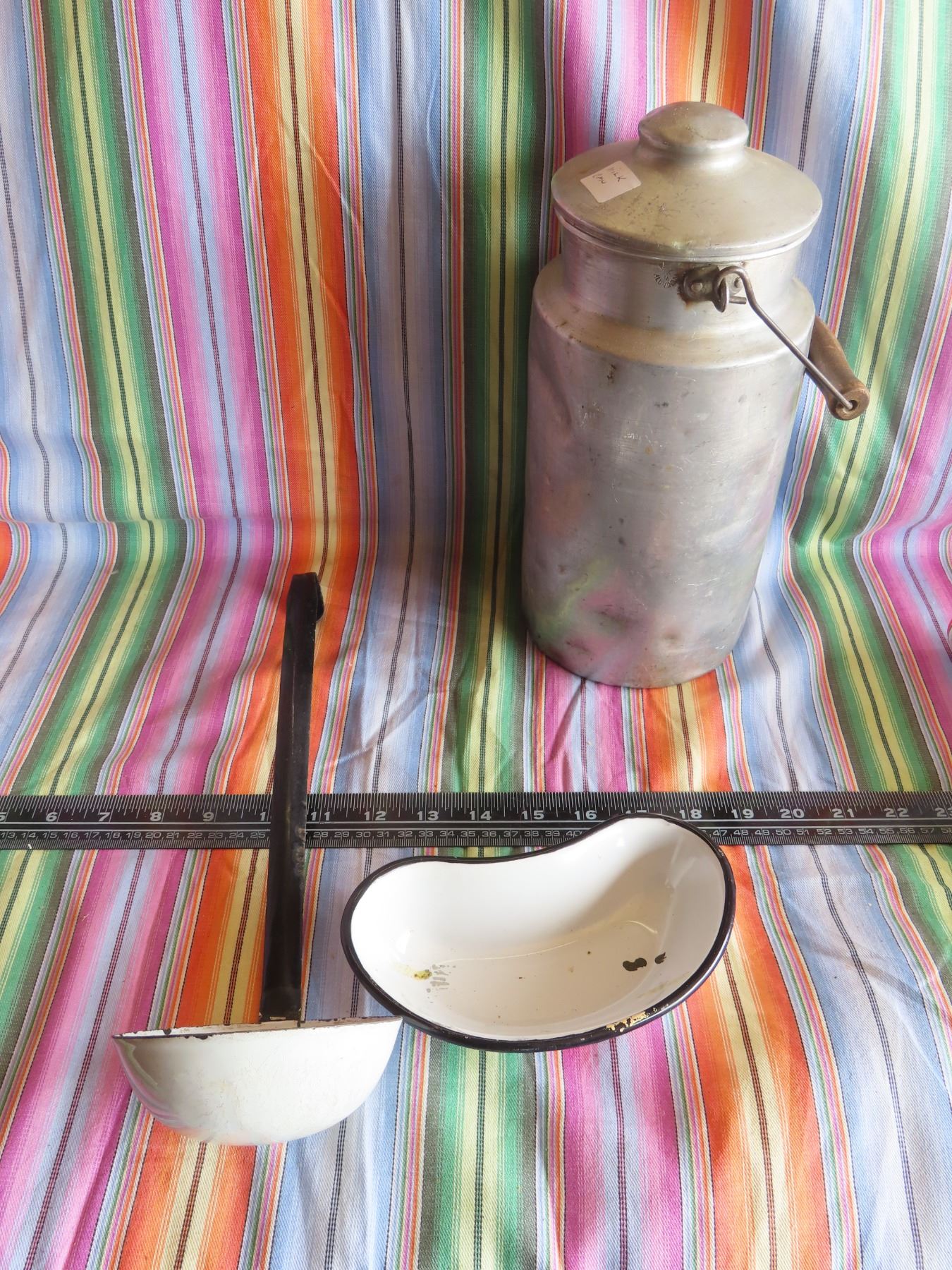 antique milk can and enamel hospital wear