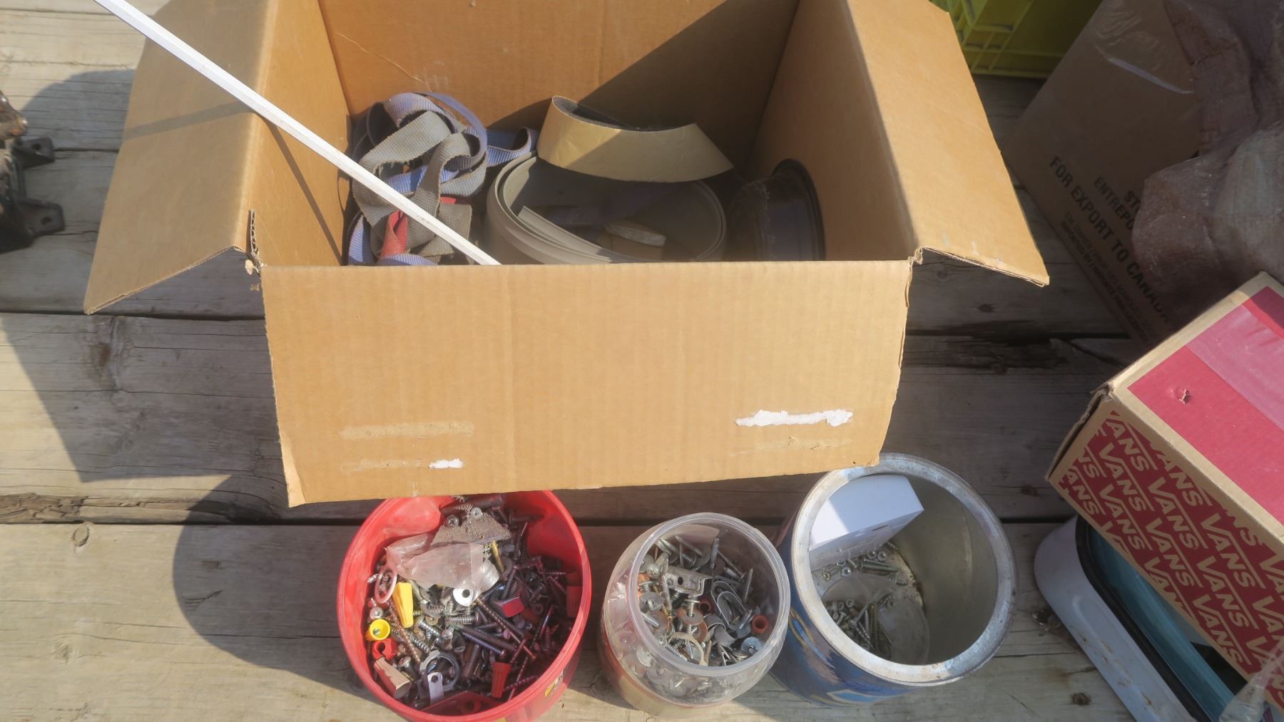 assorted hardware - screws, washers, ratchet straps, etc.