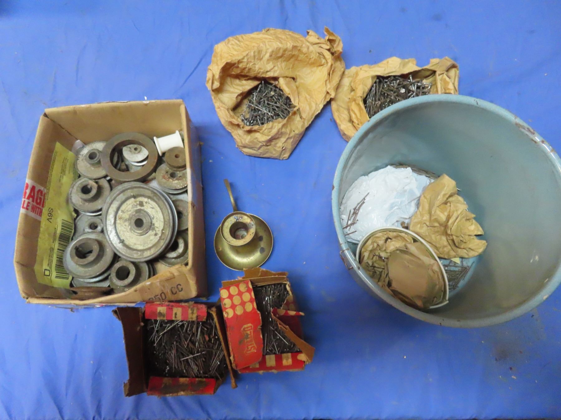 assorted nails and pulleys
