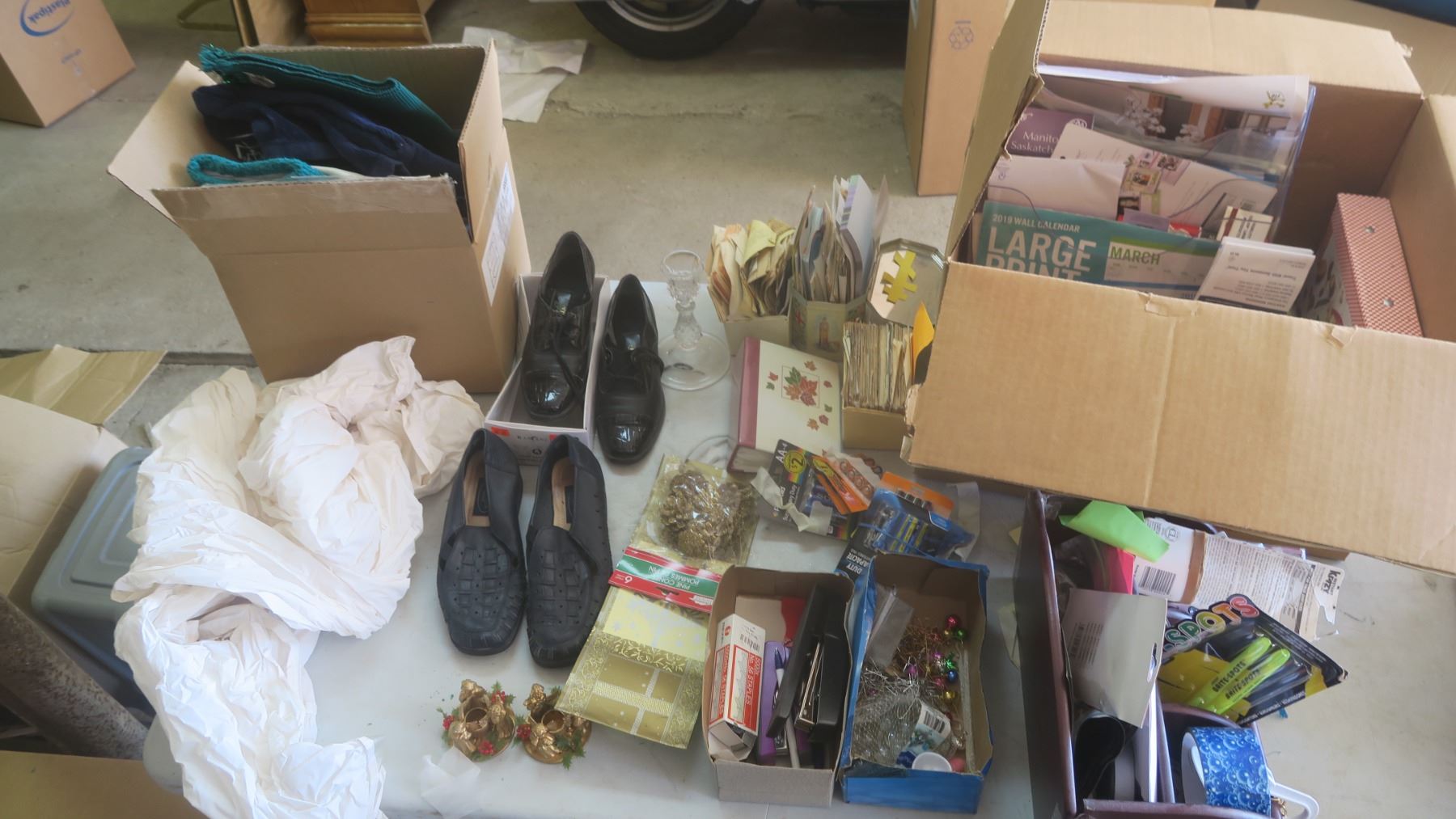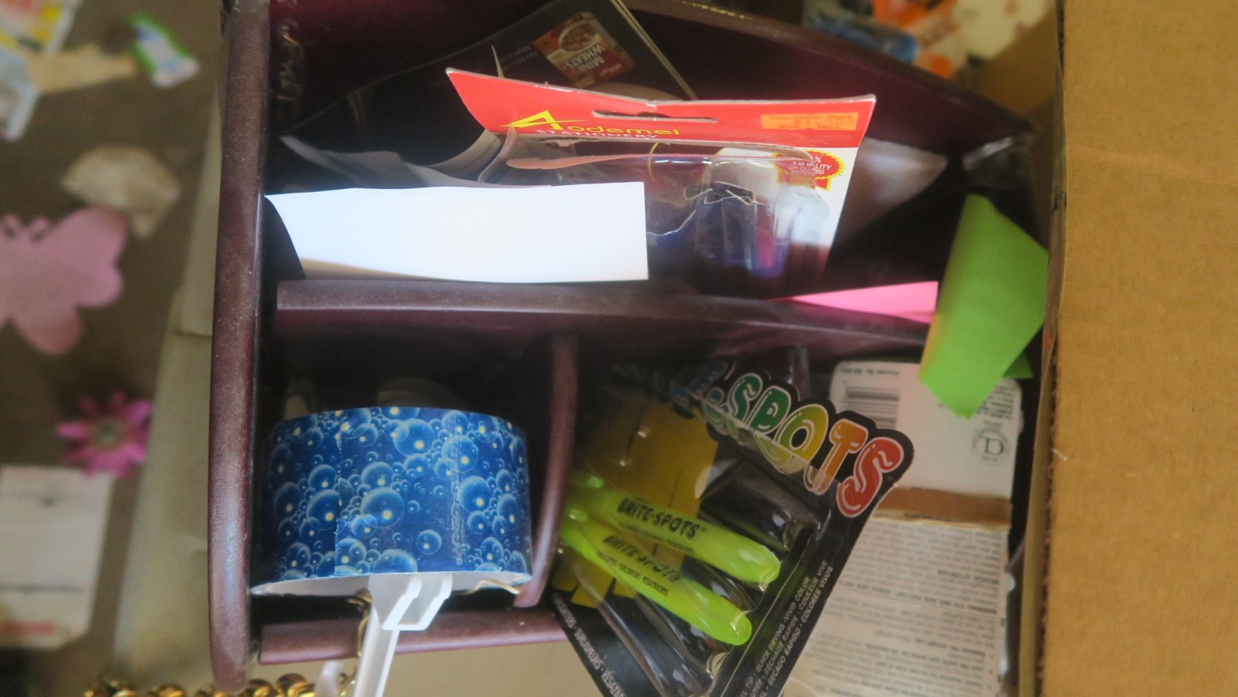 assorted office supplies, craft supplies, fabric, etc.