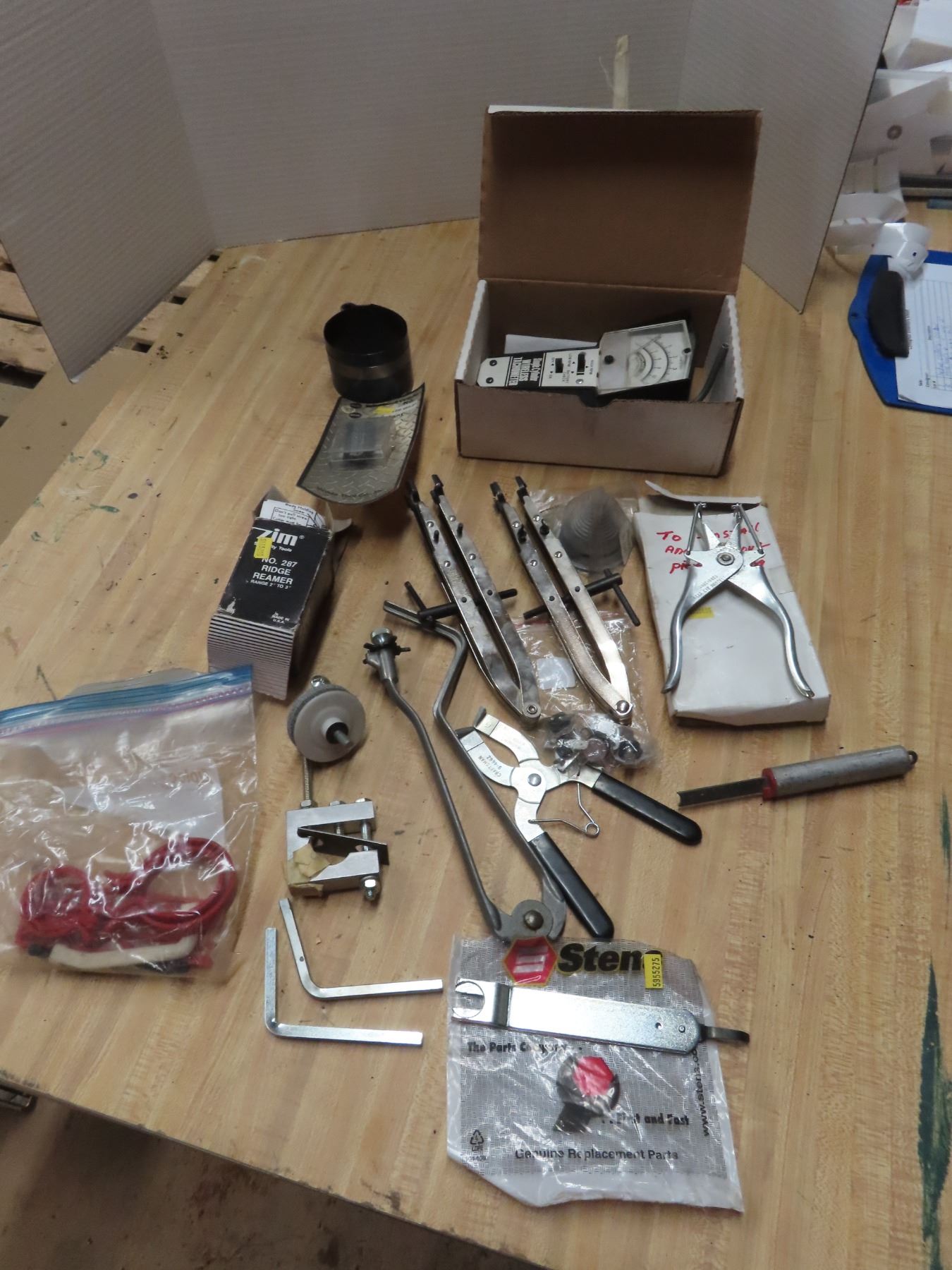 assorted small engine tools - ring expanders, ridge reamer, tachometer, etc.