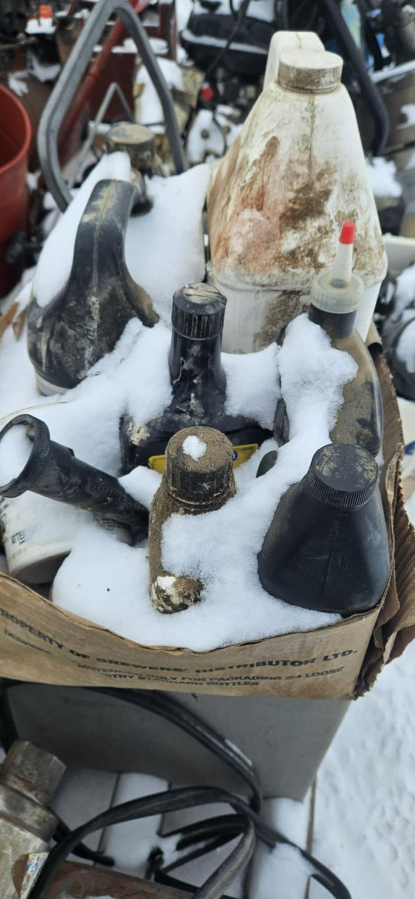 assortment of oil containers